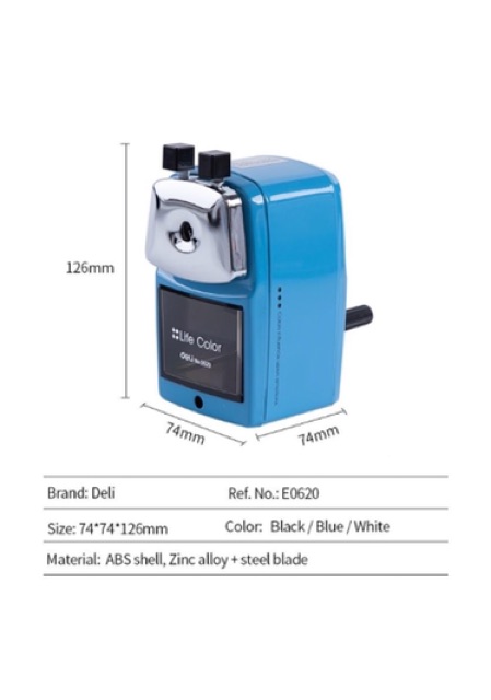 Deli 0620 Pencil Sharpener กบเหลาดินสอ มือหมุน เครื่องเหลาดินสอไม้ สี แบบยึดโต๊ะ จำนวน 1 เครื่อง