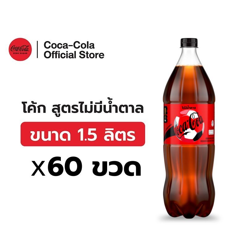 [จัดส่งเฉพาะกทม. ปริมณฑลและชลบุรี][x5]โค้ก น้ำอัดลม สูตรไม่มีน้ำตาล 1.5 ลิตร 12 ขวด จำนวน 5 แพ็ค รวม 60 ขวด