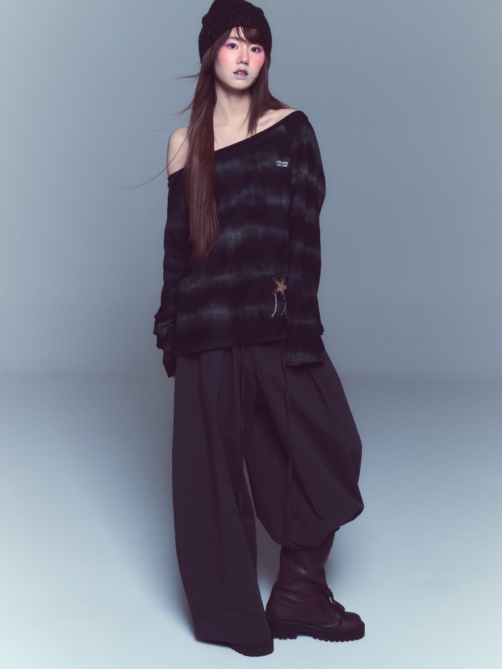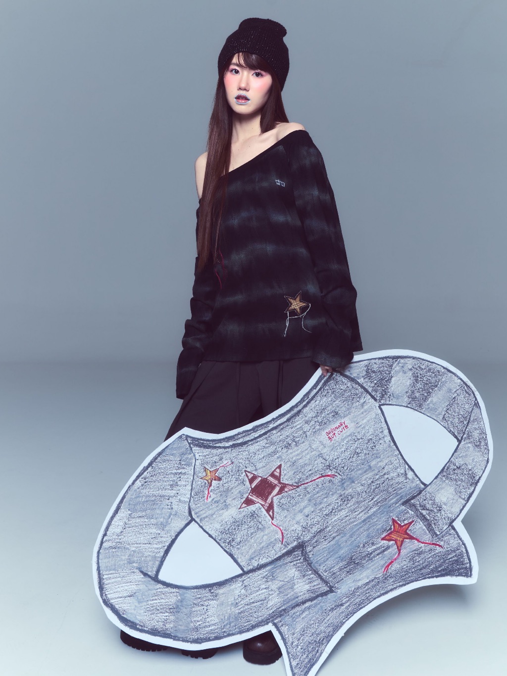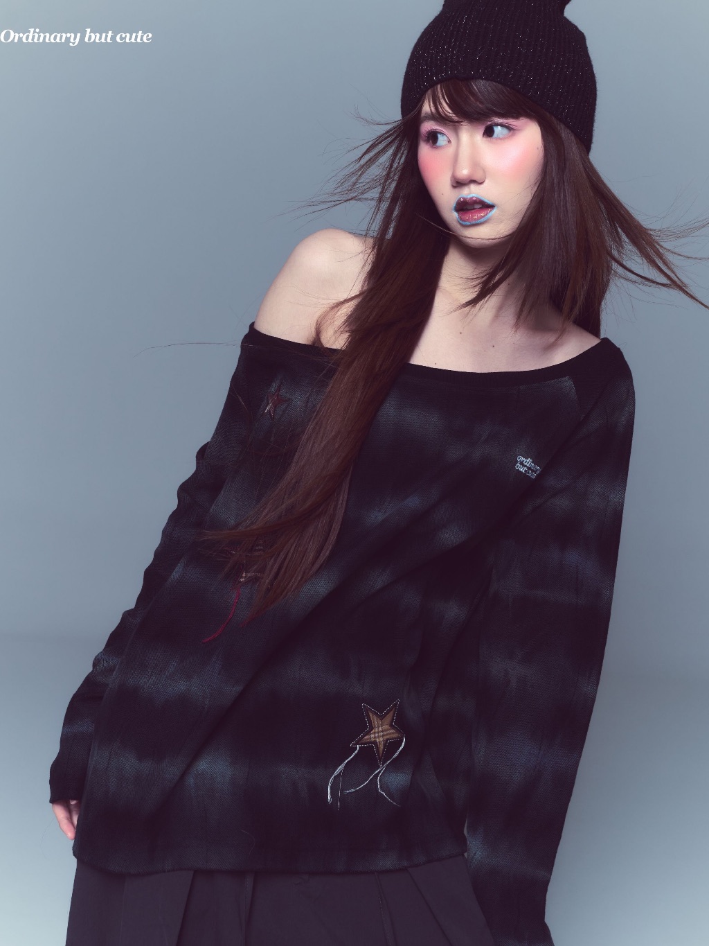 เสื้อปาดไหล่ odbc dark cute off shoulder เสื้อปาดไหล่ ลายดาวสุดคิ้ว (สามารถพลิกใส่ได้ทั้งสองด้านนะคะ)