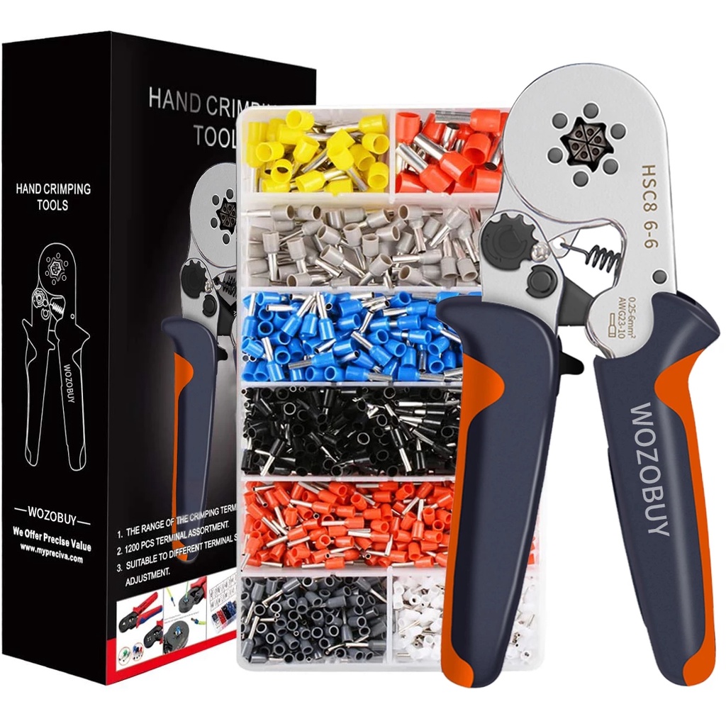 Wozobuy ชุดเครื่องมือคีมย้ําหางปลา ฟันเลื่อยหกเหลี่ยม ปรับเองได้ พร้อมหางปลา 1900 ชิ้น