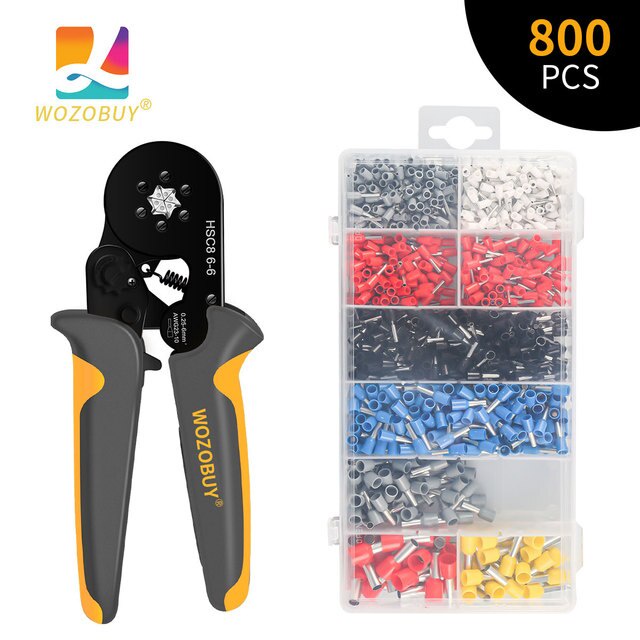 ชุดเครื่องมือคีมย้ําหางปลา แบบหกเหลี่ยม ปรับได้เอง พร้อมขั้วต่อสายไฟ