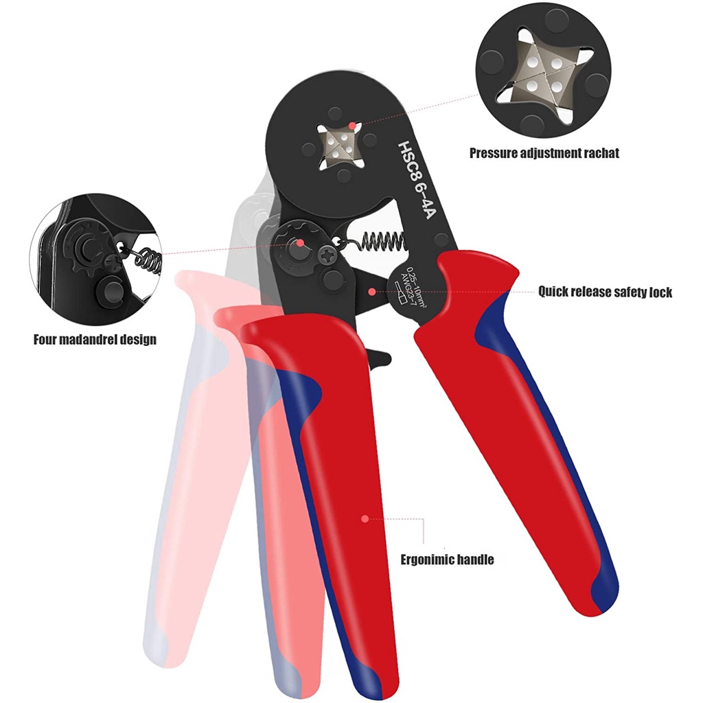 ชุดคีมย้ําหางปลา HSC8 6-4A/6-4 0.25-10 มม.2 23-7AWG 6-6 0.25-6 มม.2 ความแม่นยําสูง