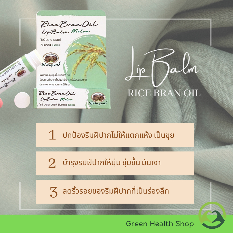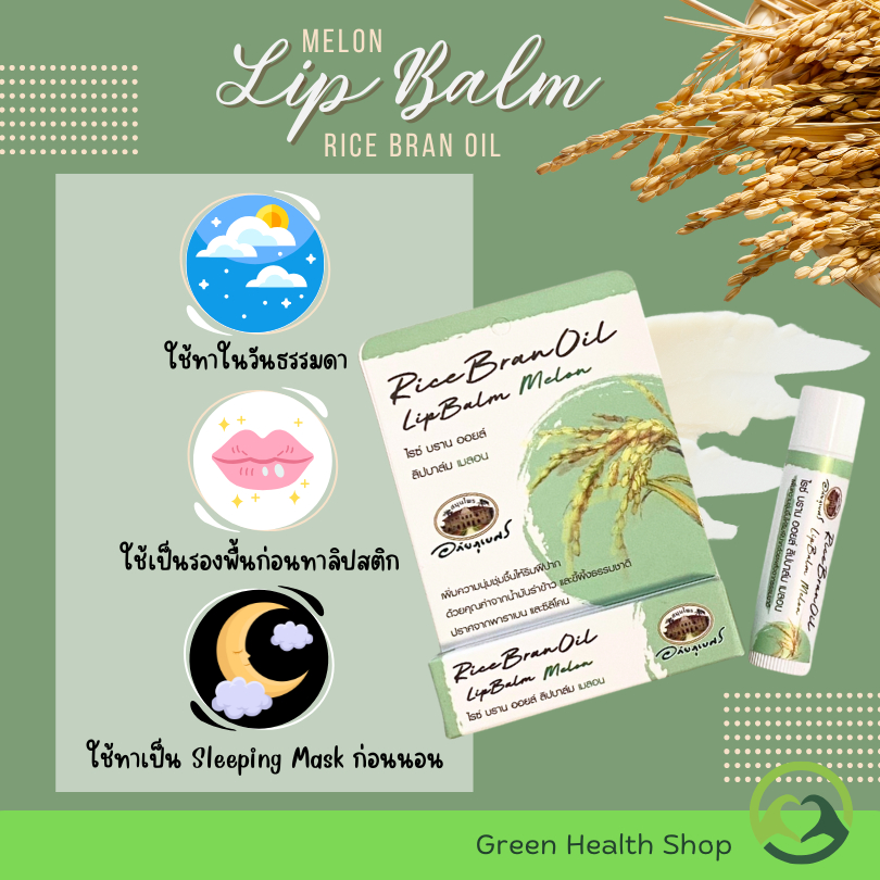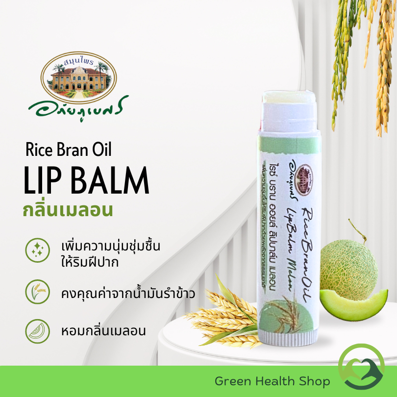 อภัยภูเบศร ลิปบาล์มน้ำมันรำข้าว กลิ่นเมลอน ลิปบาล์ม ไรซ์ บราน ออยล์ Rice Bran Oil Lip balm Melon