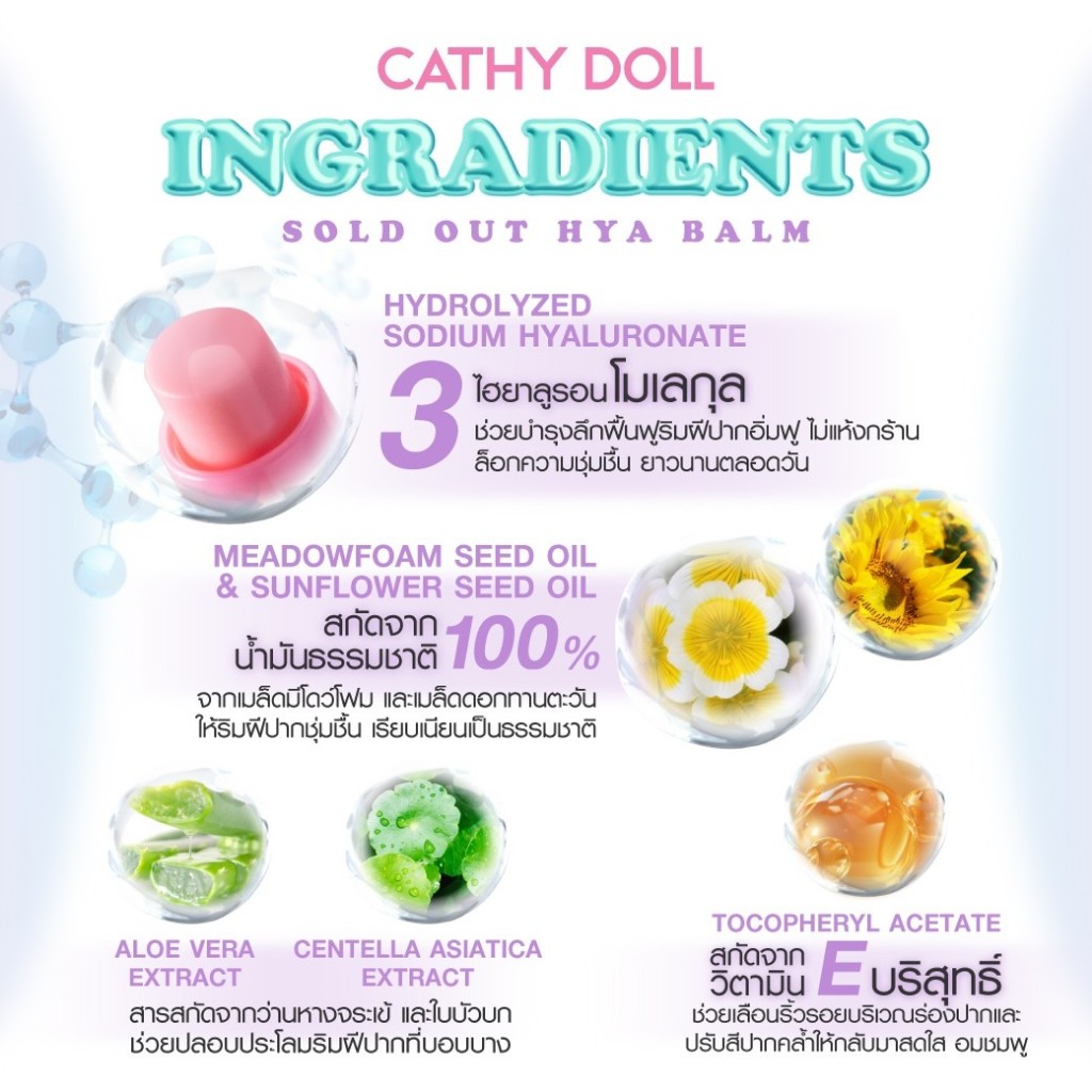 Cathy Doll【โซลด์เอาท์ไฮยาบาล์ม】ลิปมัน ลิปปากฉ่ำน้ำ Cathy Doll Sold Out Hya Balm 4g