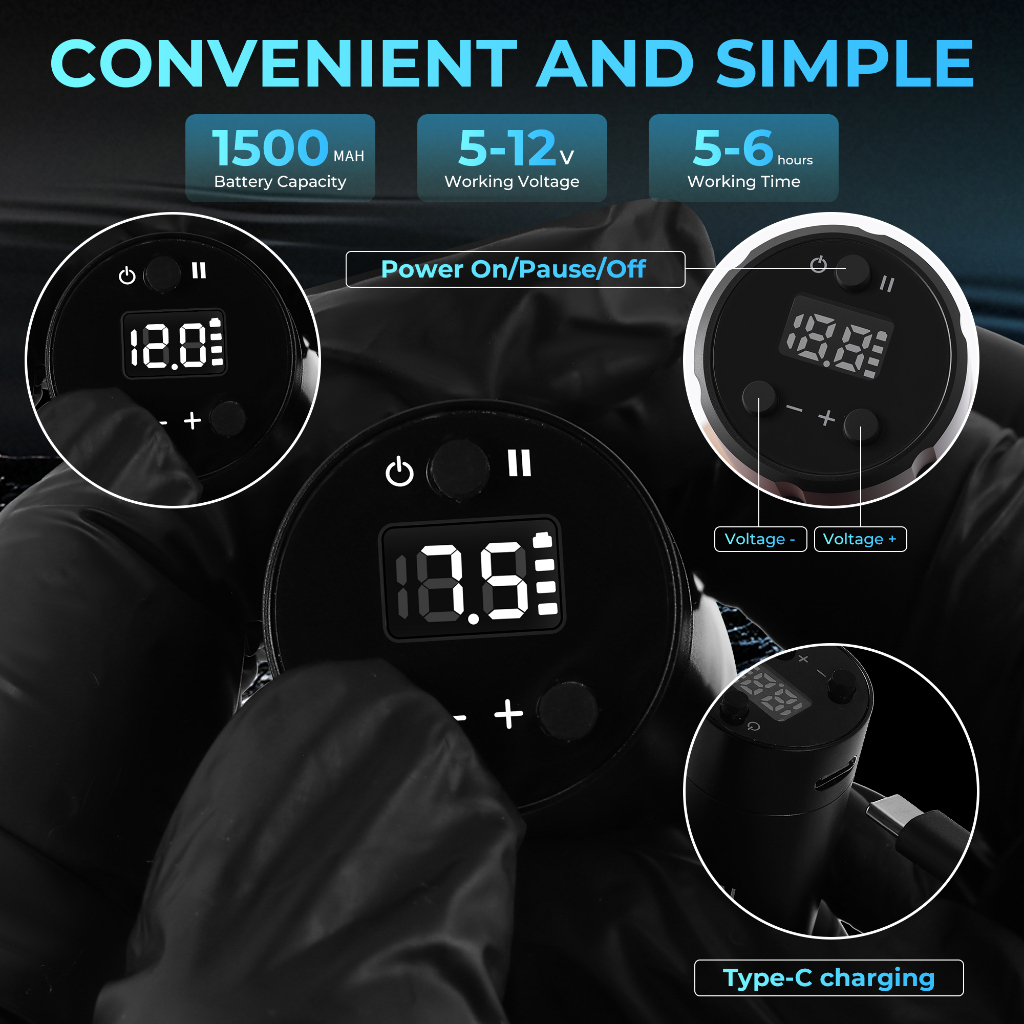 Greelon ปากกาสักไร้สายตัดและพ่นหมอกจอแสดงผล LED แบตเตอรี่ชาร์จเร็วมาตรฐานอัพเกรด Edition