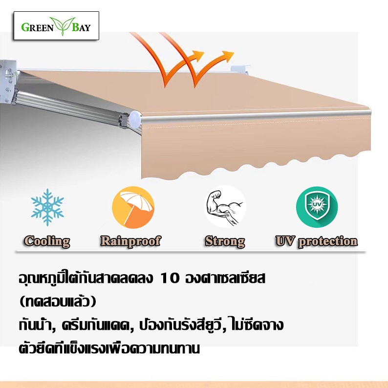 Green Bay กันสาดไฟฟ้า กันสาดพับเก็บได้ ครีมกันแดด Torque 50N.m, motor model: LM45RM-50/12
