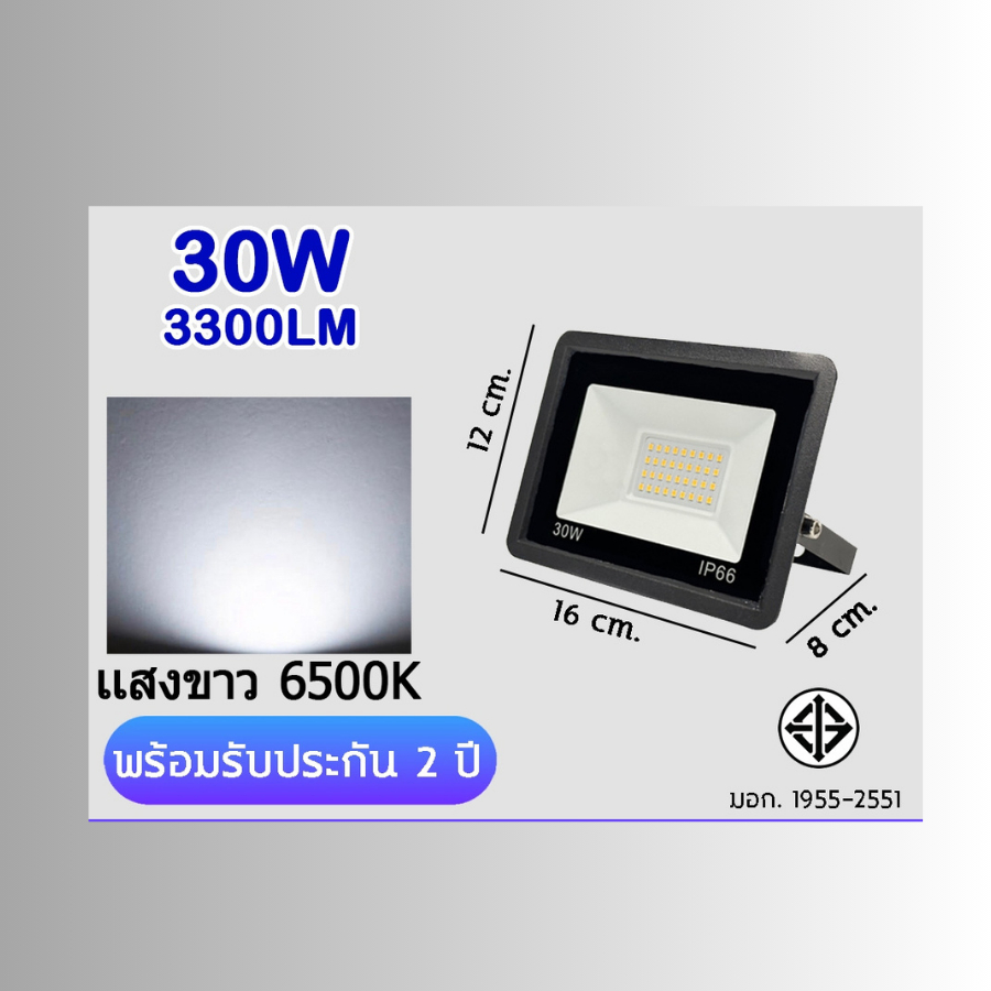 สปอตไลท์ led ไฟสว่าง 10W 20W 30W 50W 100W แสงขาว ต่อสายไฟบ้าน กันน้ำ ระดับ IP66 พร้อมส่ง