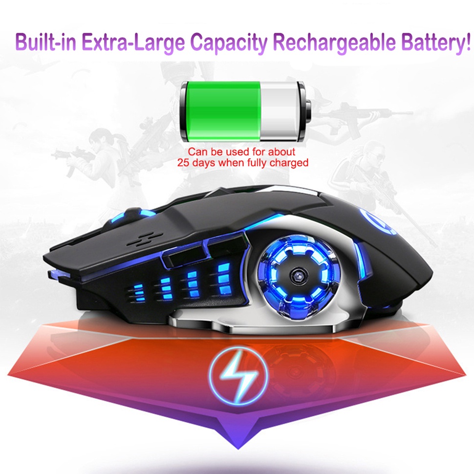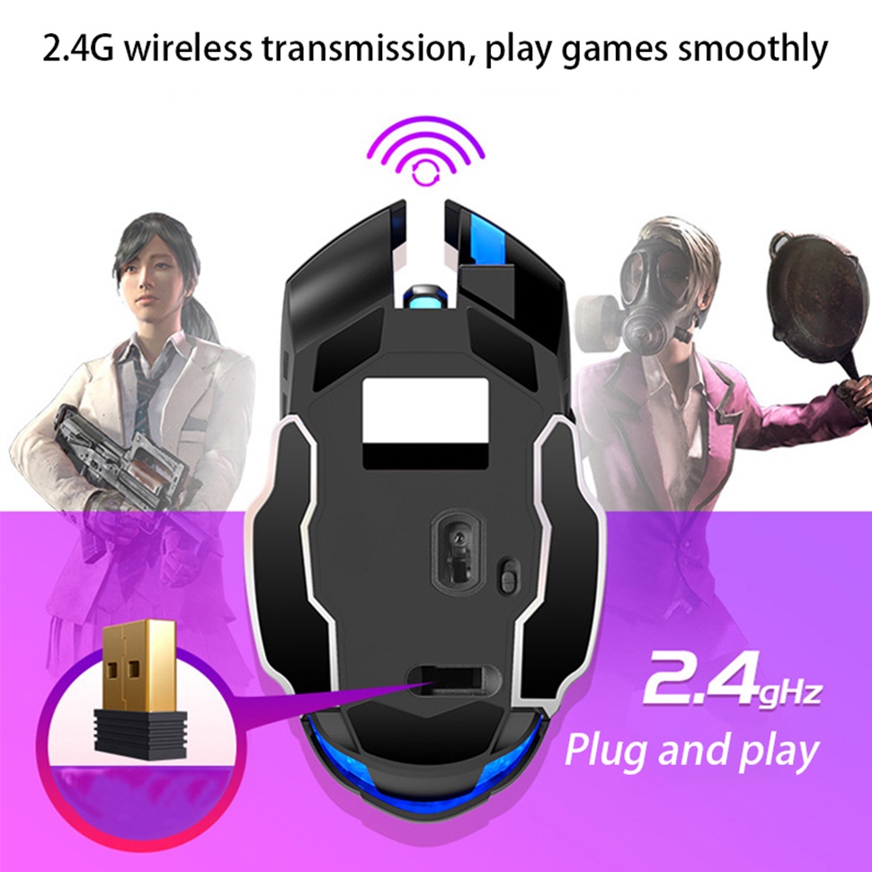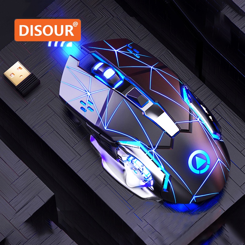 Disour เมาส์เกมมิ่งไร้สาย 2.4G 1600 DPI LED เสียงเงียบ ปรับได้ สําหรับคอมพิวเตอร์ แล็ปท็อป