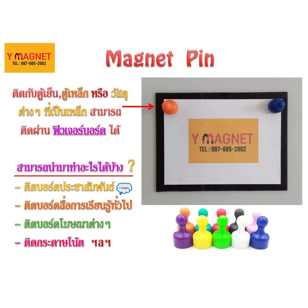 แม่เหล็กติดไวท์บอร์ดแรงดูดสูงสีต่างๆ Pin Magnet 1 ชิ้น