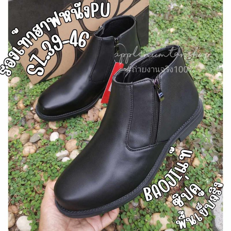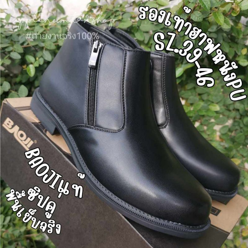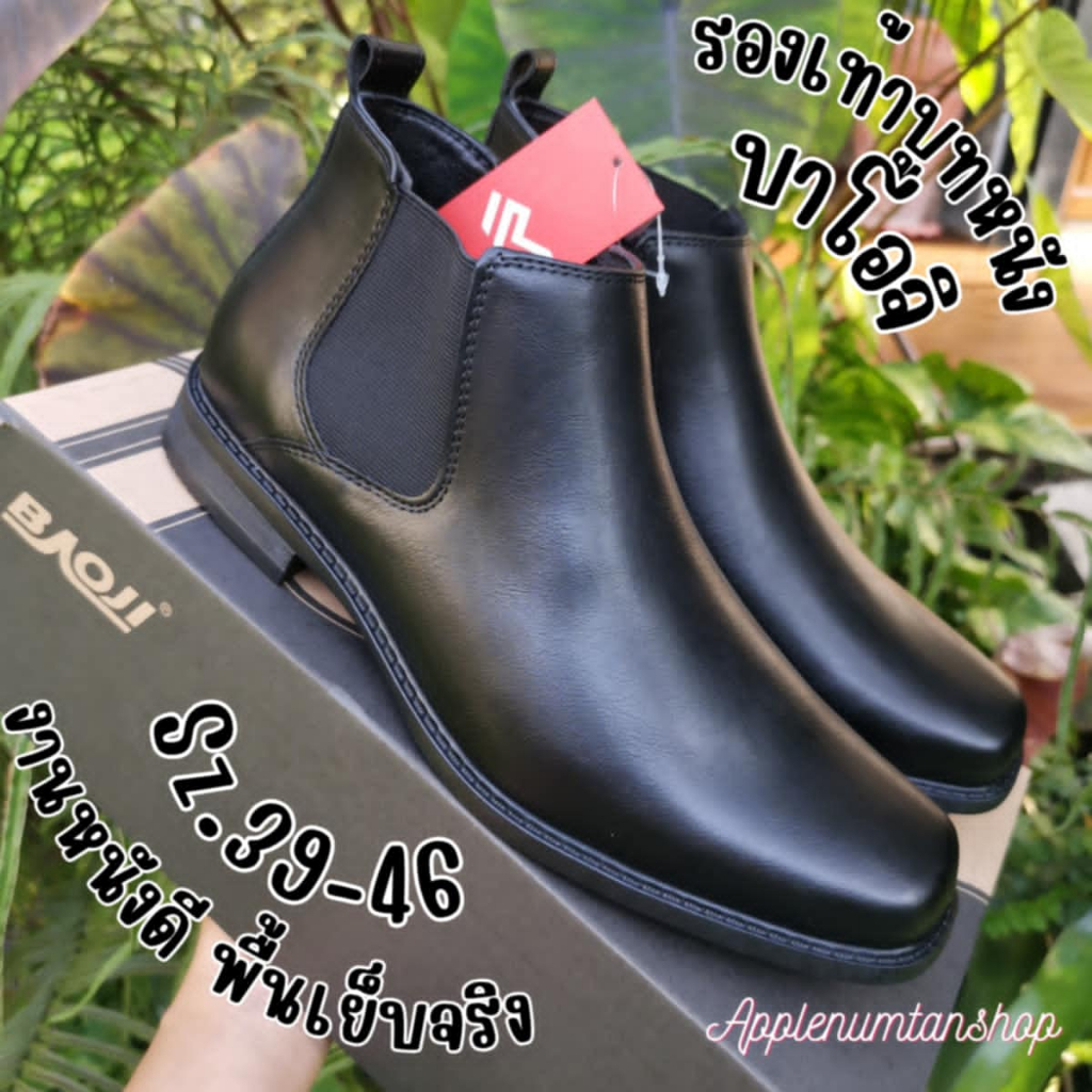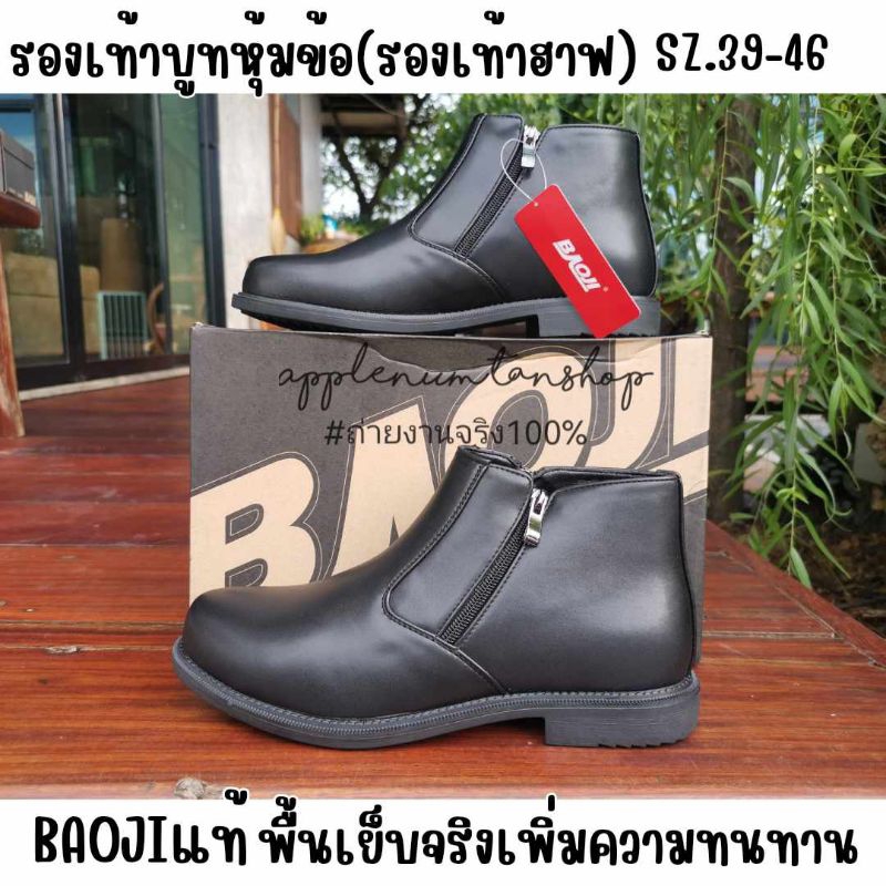 รองเท้าฮาฟหนัง รองเท้าบูทหุ้มข้อสีดำ ยี่ห้อ บาโอจิ size 39-46