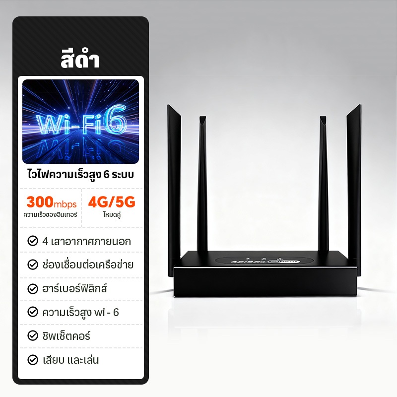 300Mbps เราเตอร์ WIFI เราเตอร์ใส่ซิม 4 เสาอากาศRouter WIFI 5Gสามารถใช้ได้กับเครือข่าย SIM ทั้งหมด 200㎡ความคุ้มครองสุดยอด