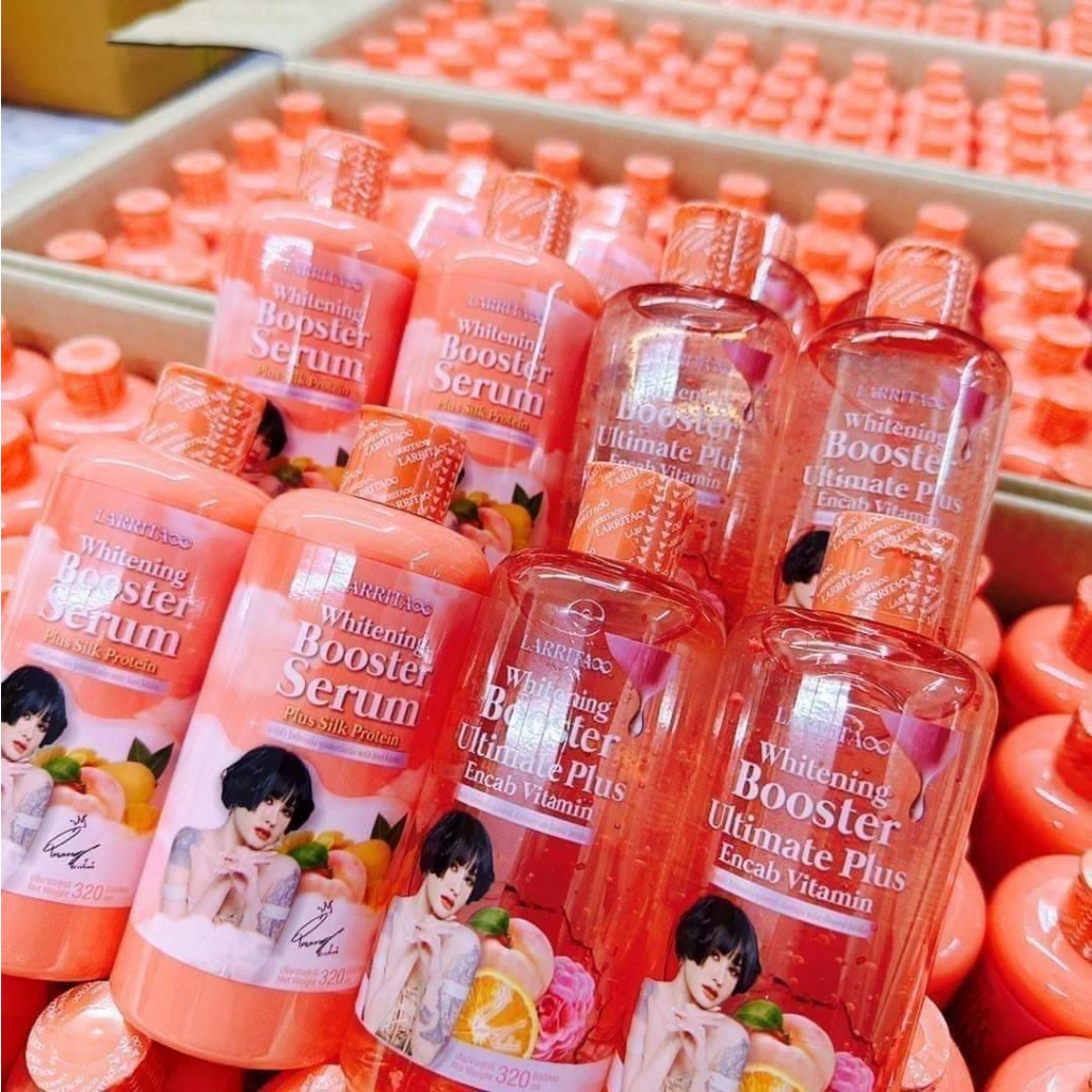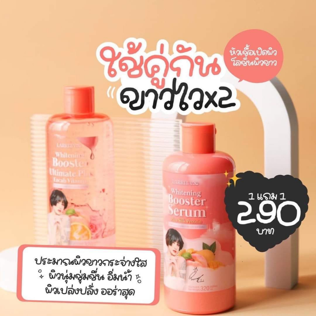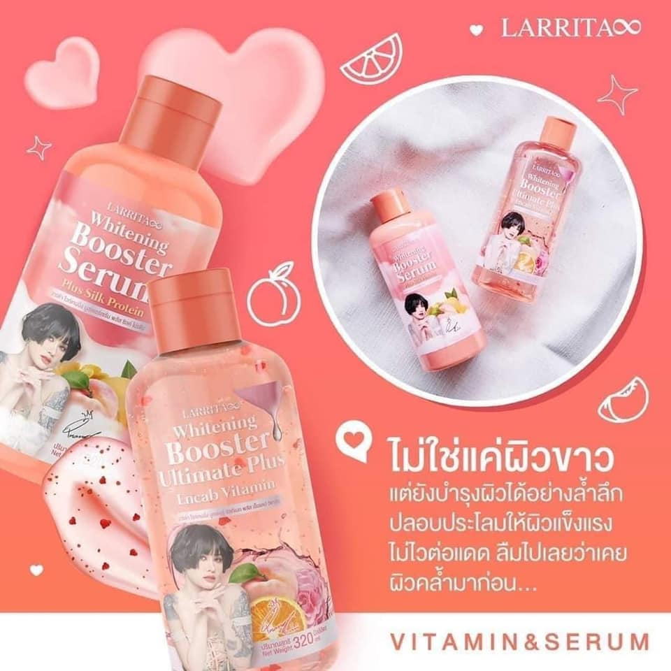**ขายเป็นคู่** แพคเกจใหม่ โลชั่นปรางทิพย์+เซรั่ม คู่เผือก Larrita Whitening Booster Serum ขนาด 320 ml.
