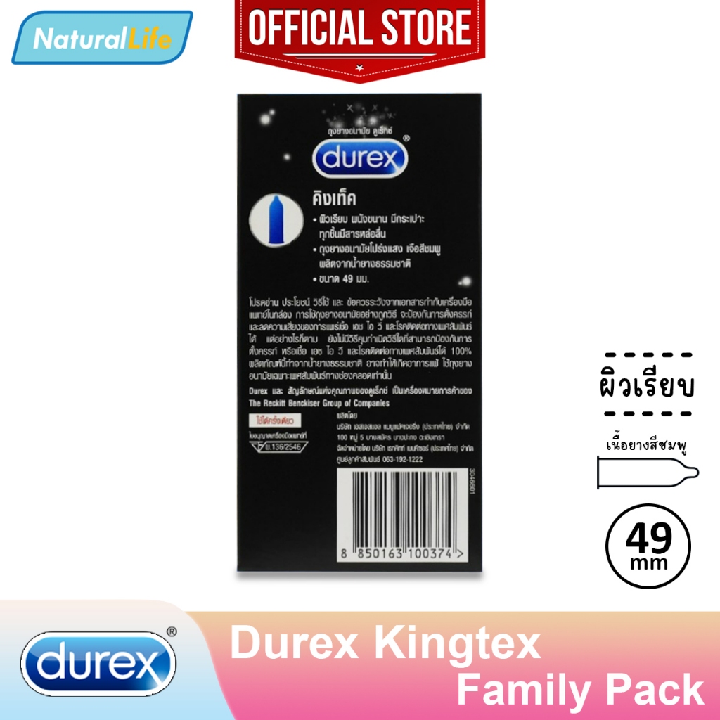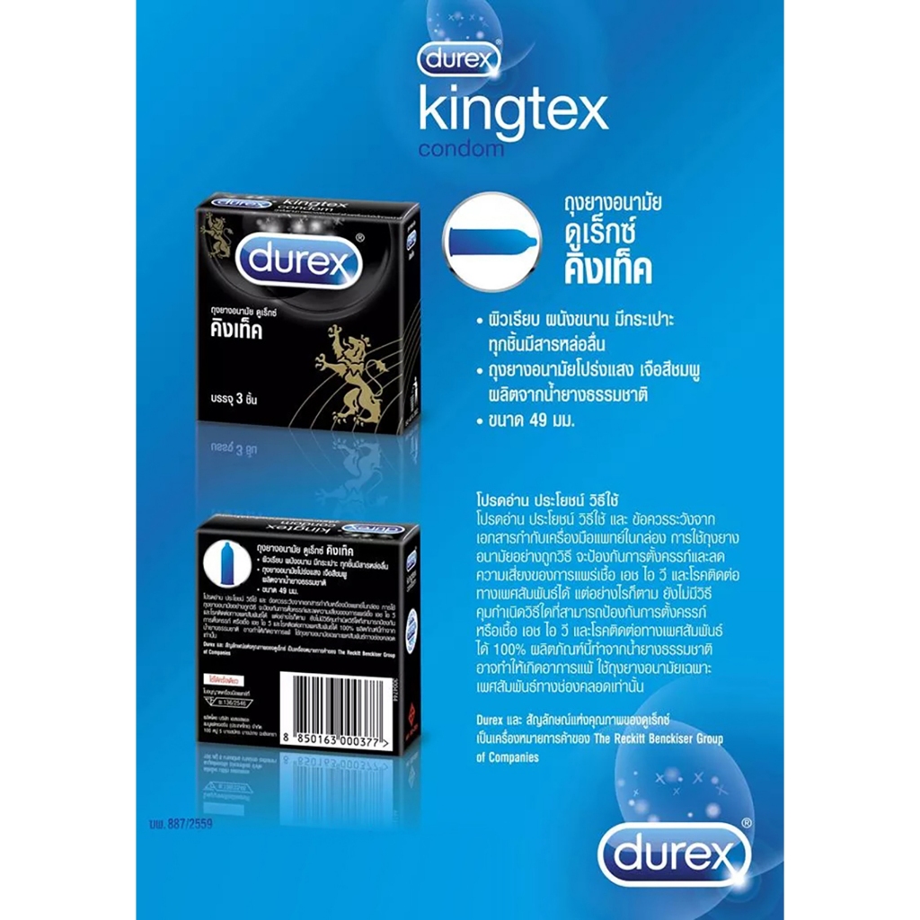 Durex Kingtex Condom ถุงยางอนามัย ดูเร็กซ์ คิงเท็ค กล่องใหญ่ ผิวเรียบ ฟิตกระชับ ขนาด 49 มม. 1 กล่องใหญ่ (บรรจุ 12 ชิ้น)