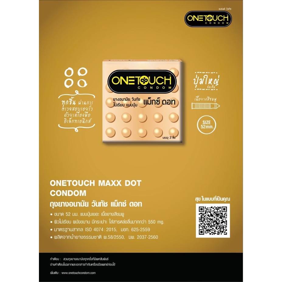 ++ ซื้อ 1 แถม 1 ++ Onetouch Maxx Dot Condom ถุงยางอนามัย วันทัช แม็กซ์ ดอท Max dot ผิวไม่เรียบ แบบปุ่ม ขนาด 52 มม.