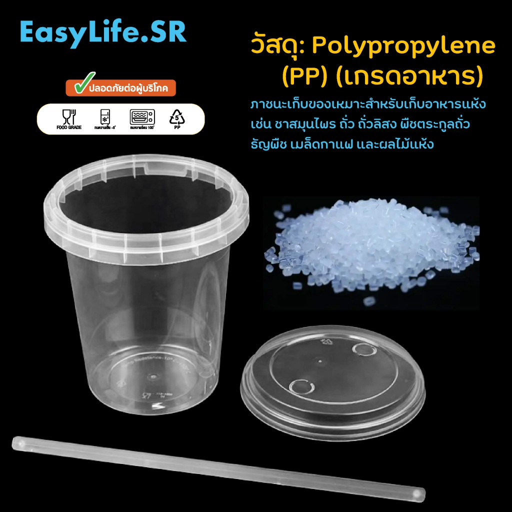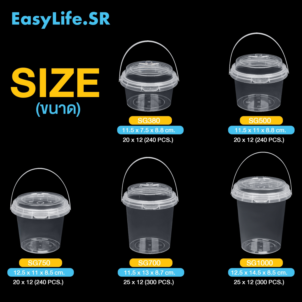 ถ้วยพลาสติกใสทรงกลมแบบถังพร้อมฝาปิด ขนาด 380/500/700/750/1000 ml. ชุด 20 และ 25 ชิ้น ถังพลาสติก ถังน้ำแข็ง ถังโค้ก ถังน้