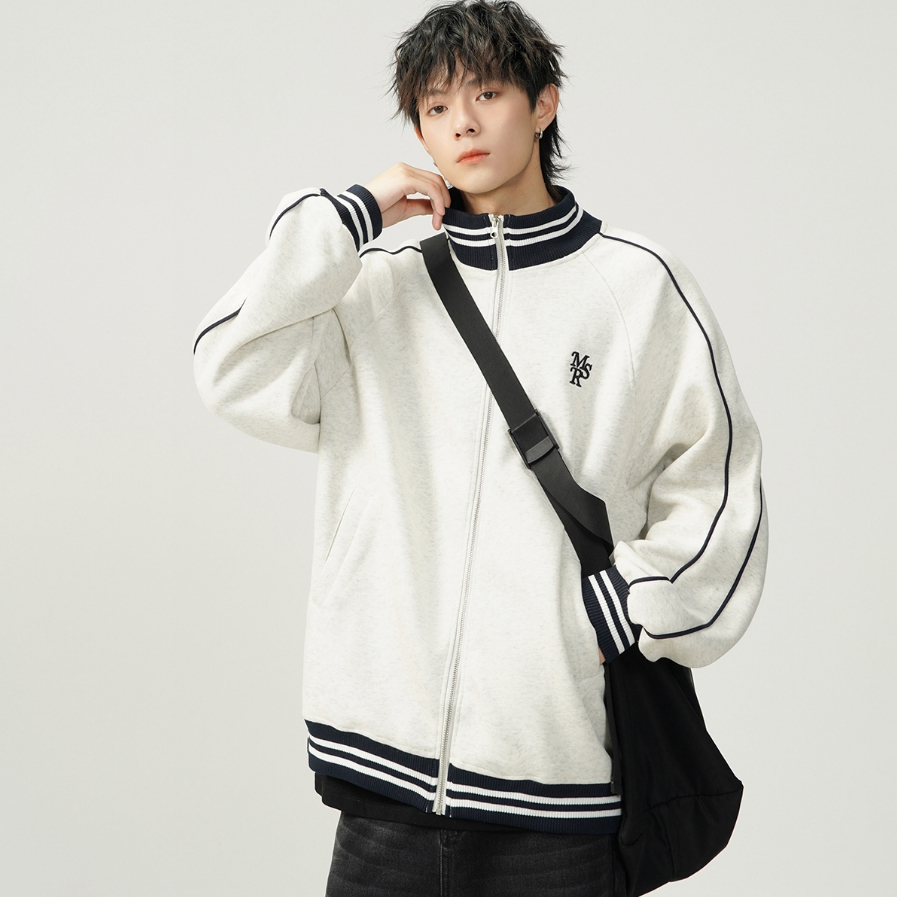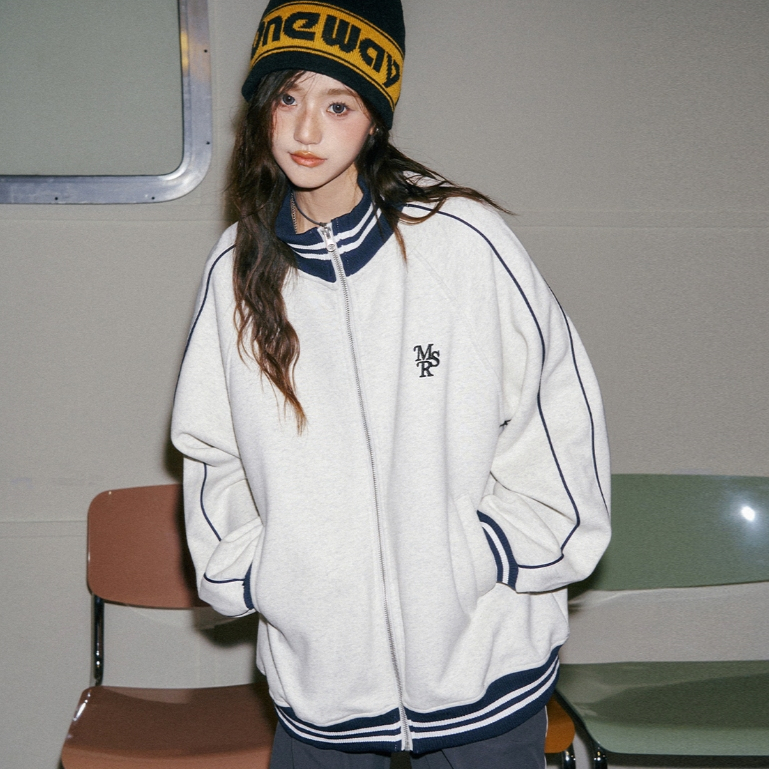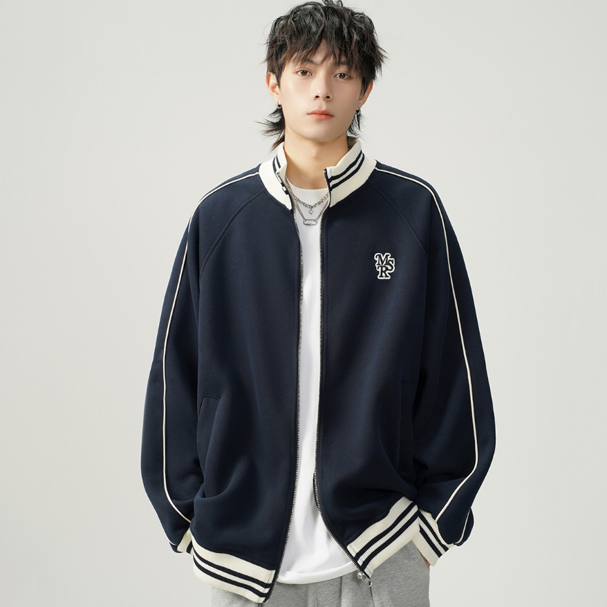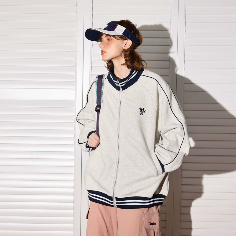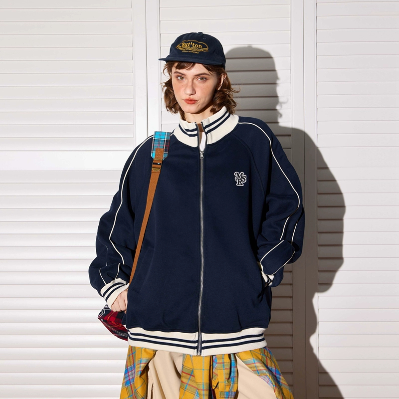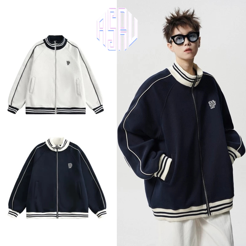 Asrv ฤดูใบไม้ร่วงผู้ชายและผู้หญิงตัดกันแจ็คเก็ตหลวมอเมริกันย้อนยุคยืนขึ้นปกปักแจ็คเก็ตเบสบอล