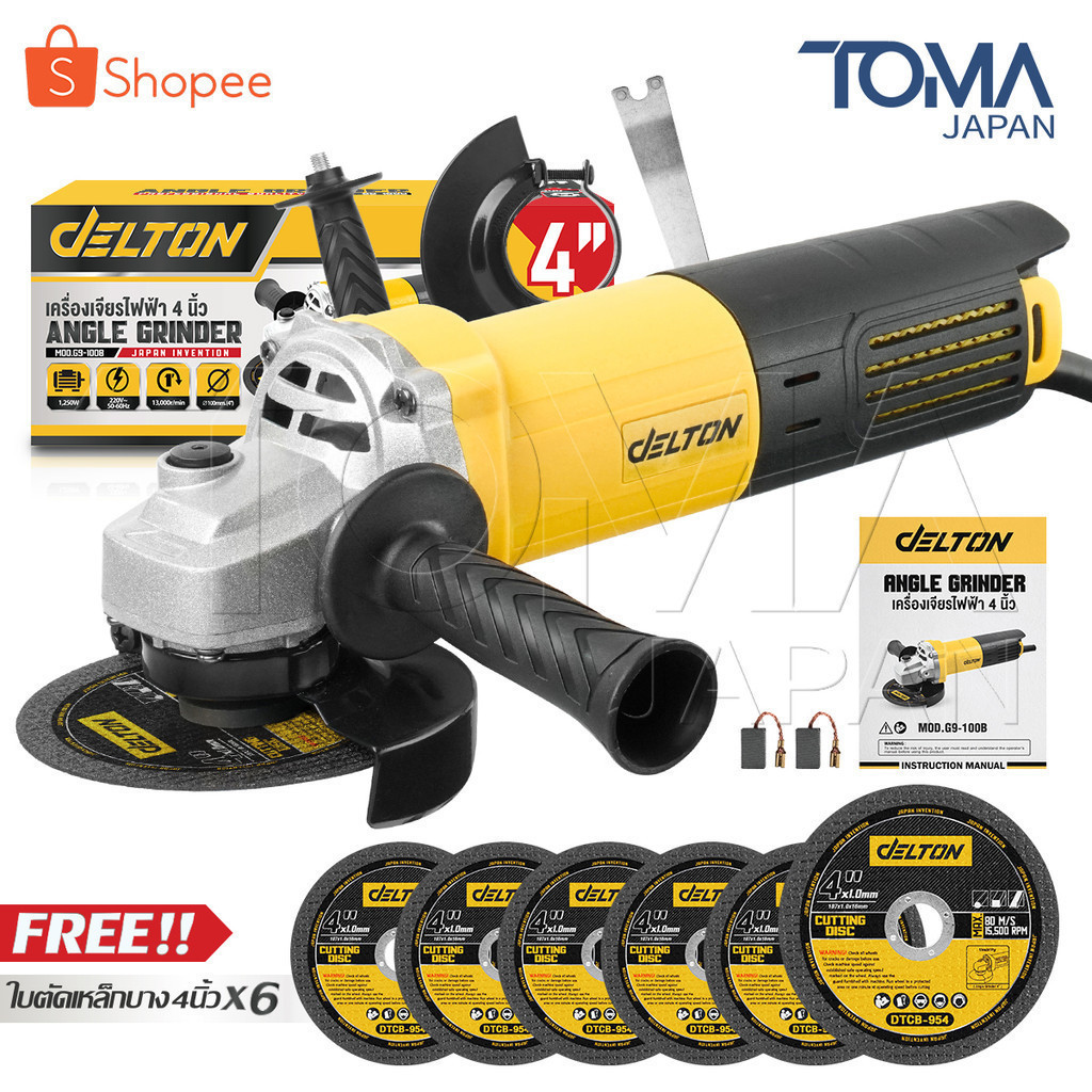 DELTON เครื่องเจียรไฟฟ้า 4 นิ้ว 1,250W Angle Grinder พร้อมด้ามจับ และฝาครอบป้องกันรุ่น G9-100B แถมฟรี! ใบตัดเหล็ก 6 ใบ