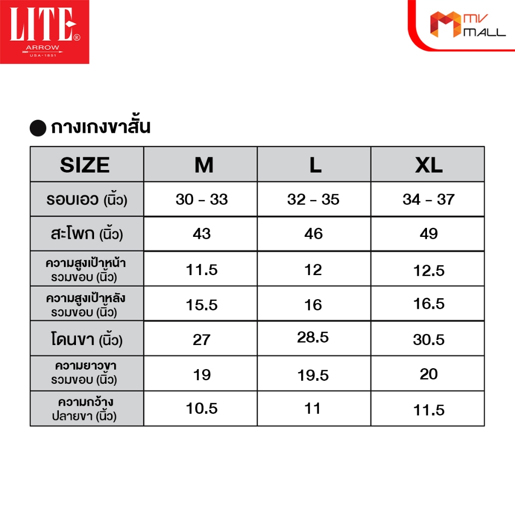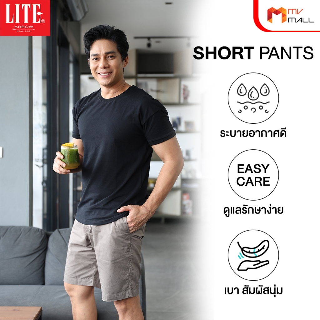 [พร้อมส่ง] ARROW LITE กางเกงขาสั้นเอวยางยืด กระเป๋าลึก ผ้า Cotton 100% จำนวน 5 ตัว 5 สี