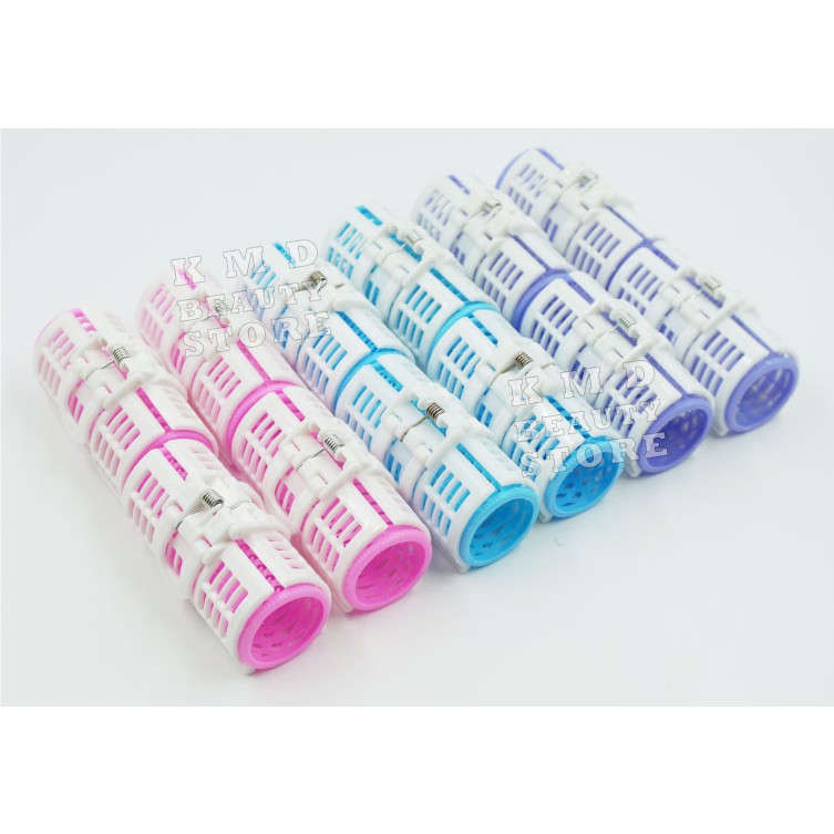 โรลม้วนผม แกนม้วนผม แบบมีที่หนีบในตัว เซทหลากสี 12 ชิ้น ขนาดเส้นผ่านศูนย์กลาง 3 ซม. ยาว 7 ซม.