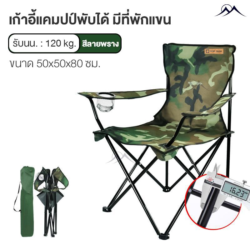 JC เก้าอี้สนามมีที่พักแขน พับเก็บได้ Top Sun ขนาด 50x50x80 รับนน.120 kg