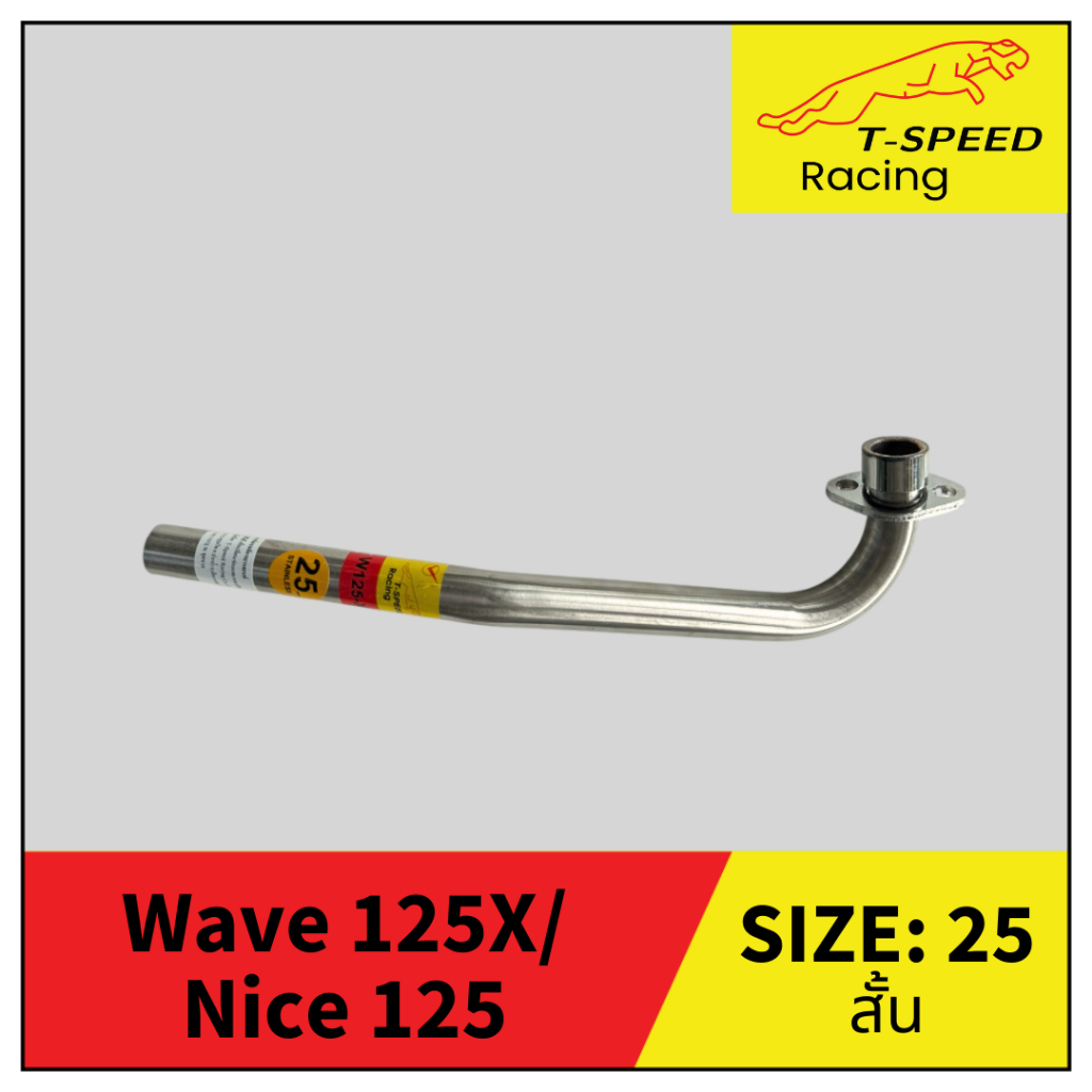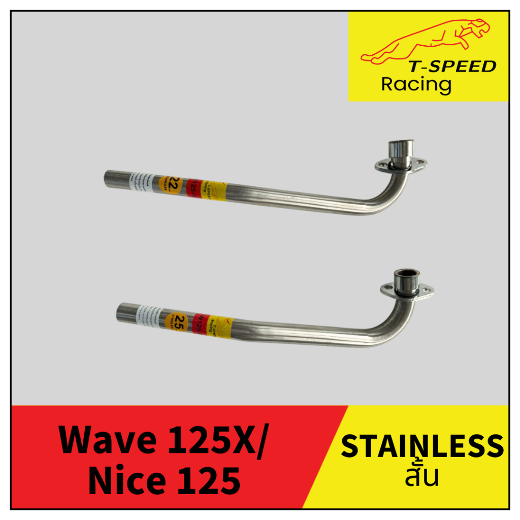 [ฟรีประเก็นปากท่อ] คอท่อ Honda Wave 125X/ Nice 125 สั้น/ ยาว ใส่ปลายเดิม ลายปล้อง สแตนเลส 304 Size 22/ 25/ 25/28-38 mm.