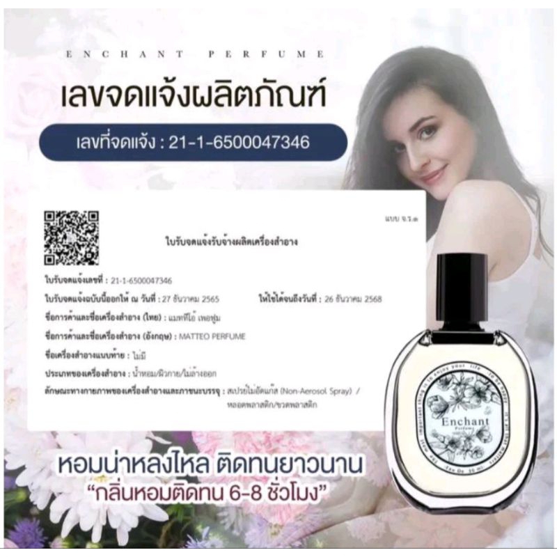 น้ำหอม Enchant หอมหรูติดทนนาน ผู้ชาย ผู้หญิง (1แถม1)