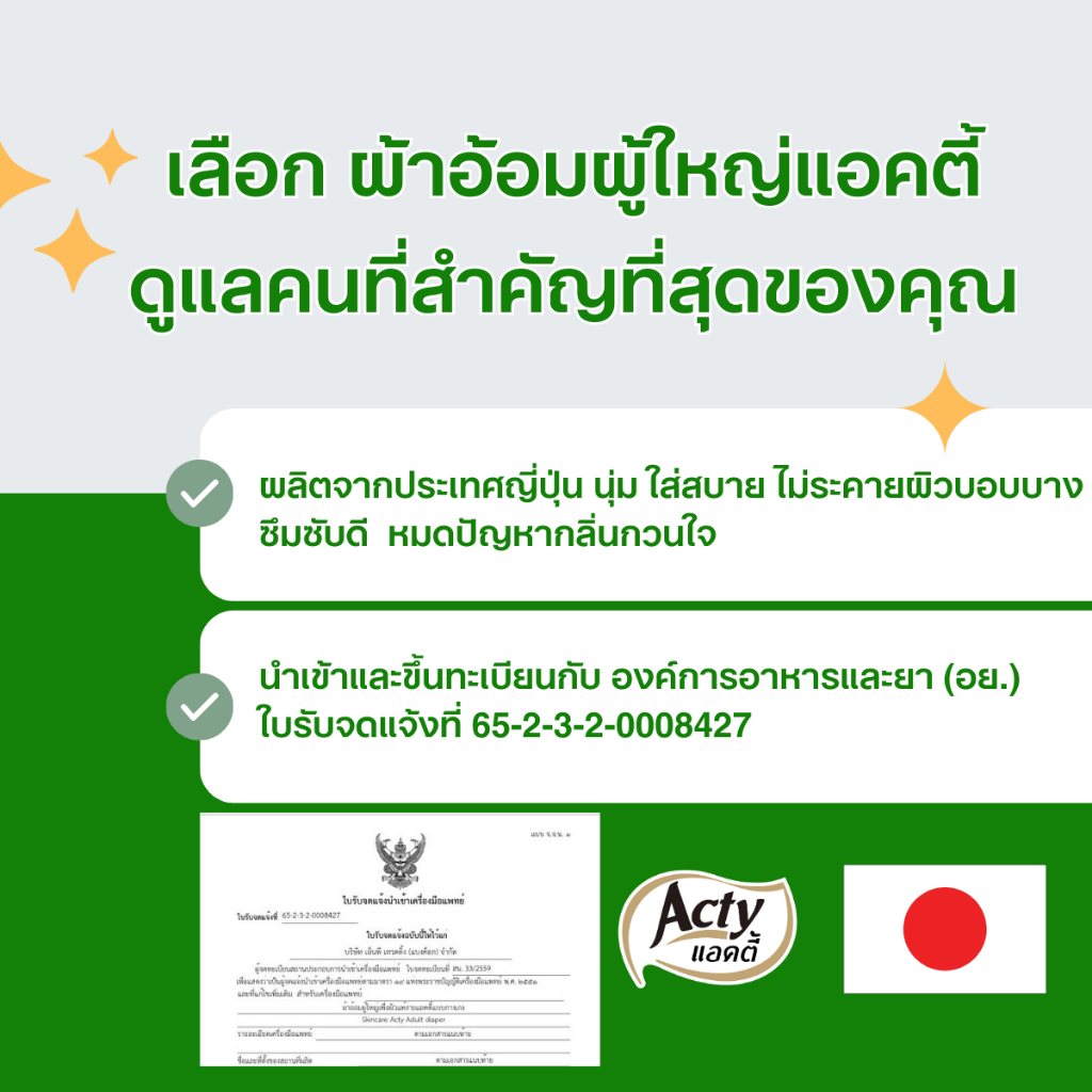 แอคตี้ ACTY ผ้าอ้อมผู้ใหญ่เพื่อผิวแพ้ง่าย ผลิตญี่ปุ่น ซึมซับมาก แพมเพิสผู้ใหญ่ L-XL 4 ห่อ 肌ケア アクティ