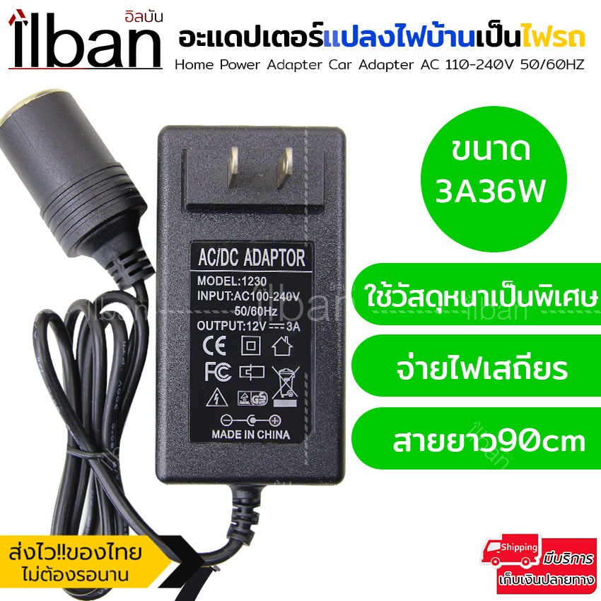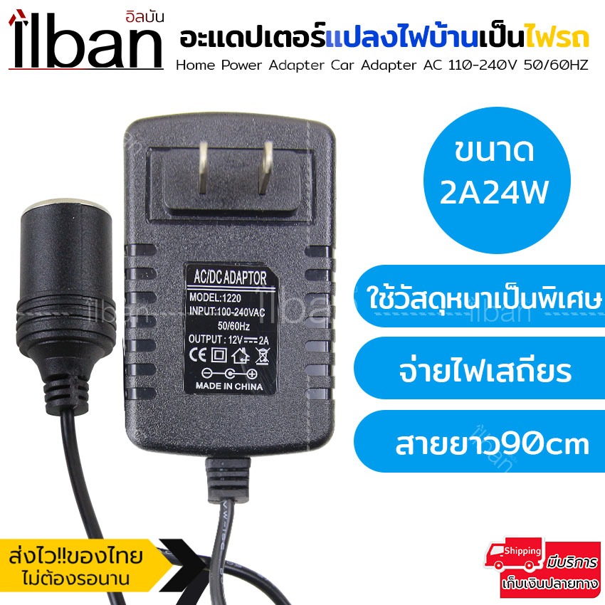 Elit Adapter แปลงไฟบ้าน 220V เป็นไฟรถยนต์ 12V DC 220V to 12V Home Power Adapter Car Adapter AC Plug