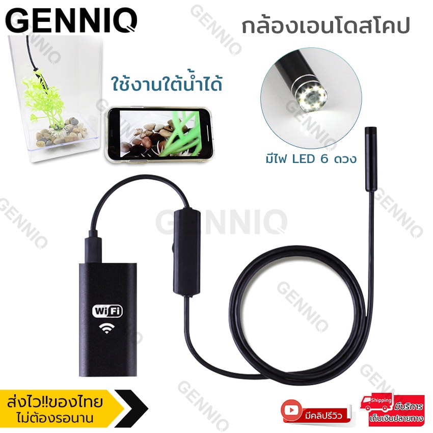 Elit กล้องเอนโดสโคป Wifi กล้องงูส่องท่อ HD 720P กันน้ำ IP67 ต่อมือถือ iOS Android Endoscope Camera 8mm LED 6 ดวง