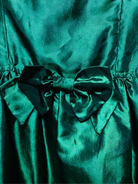 ชุดเดรสผ้าไหม สีเขียวปีกแมลงทับ