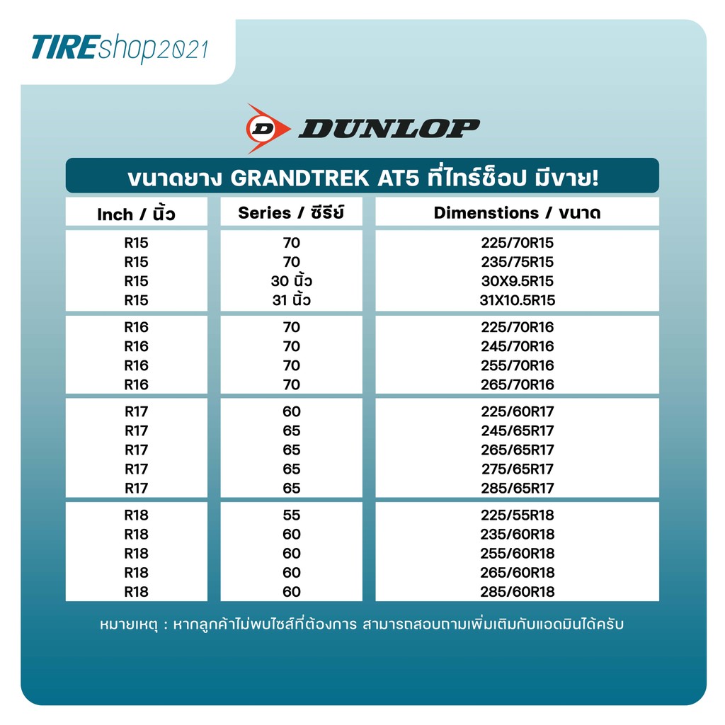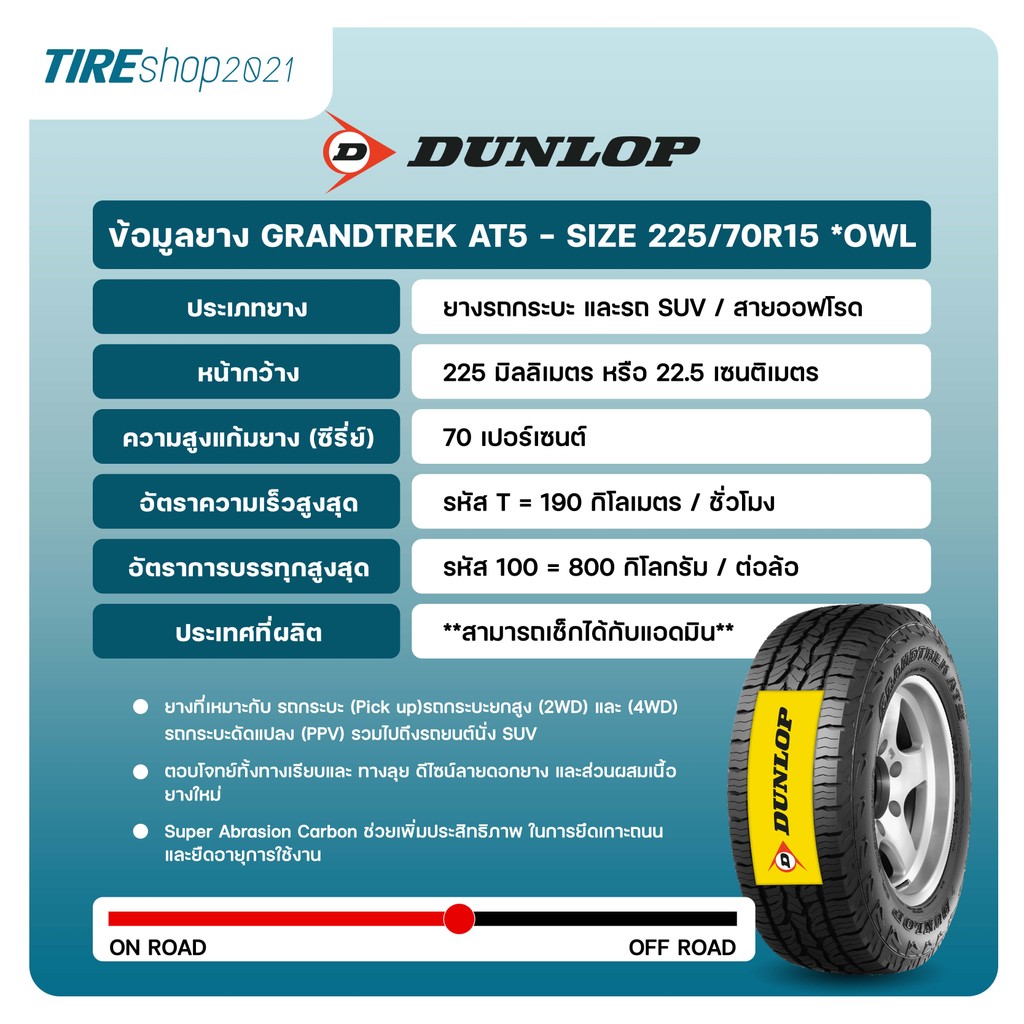 ยางรถกระบะและรถSUV DUNLOP รุ่นGRANDTREK AT5 ขนาด225/70R15 ยางปี2026 ตัวหนังสือขาว (ราคาต่อเส้น) แถมจุ๊บเติมลมฟรี