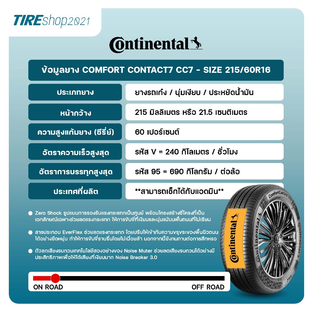 ยางรถยนต์ CONTINENTAL รุ่นCOMFORT CONTACT7 CC7 ขนาด215/60R16 ยางปี2026 (ราคาต่อเส้น) แถมจุ๊บเติมลมฟรี