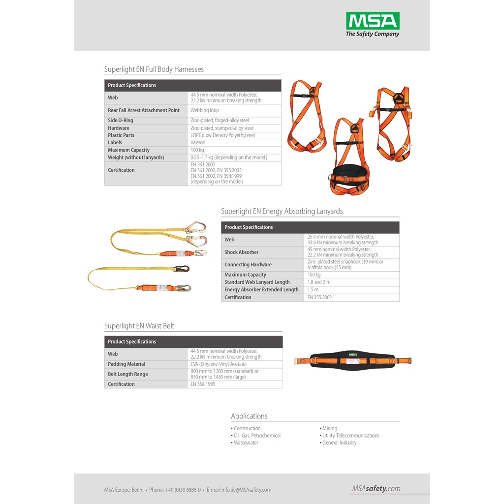 เข็มขัดนิรภัย แบบเต็มตัว เข็มขัดกันตก MSA Super light Harness GB National Standard