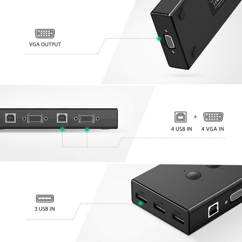 UGREEN 50280 USB KVM Switch 4 Port VGA 1080P Adapter | Multi-PC Control | Video Sharing