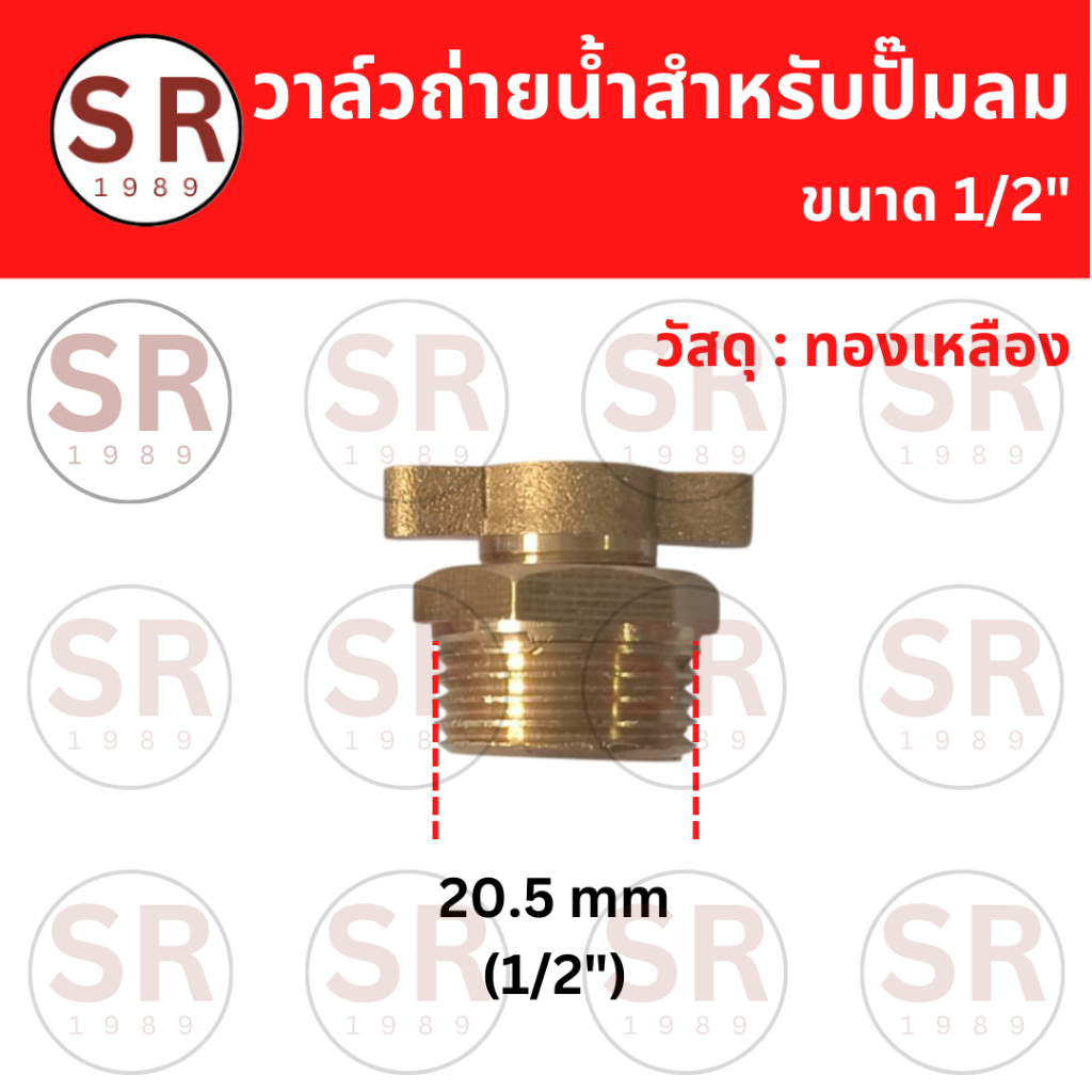 วาล์วถ่ายน้ำทองเหลือง สำหรับปั๊มลม ขนาด1/4", 3/8", 1/2"