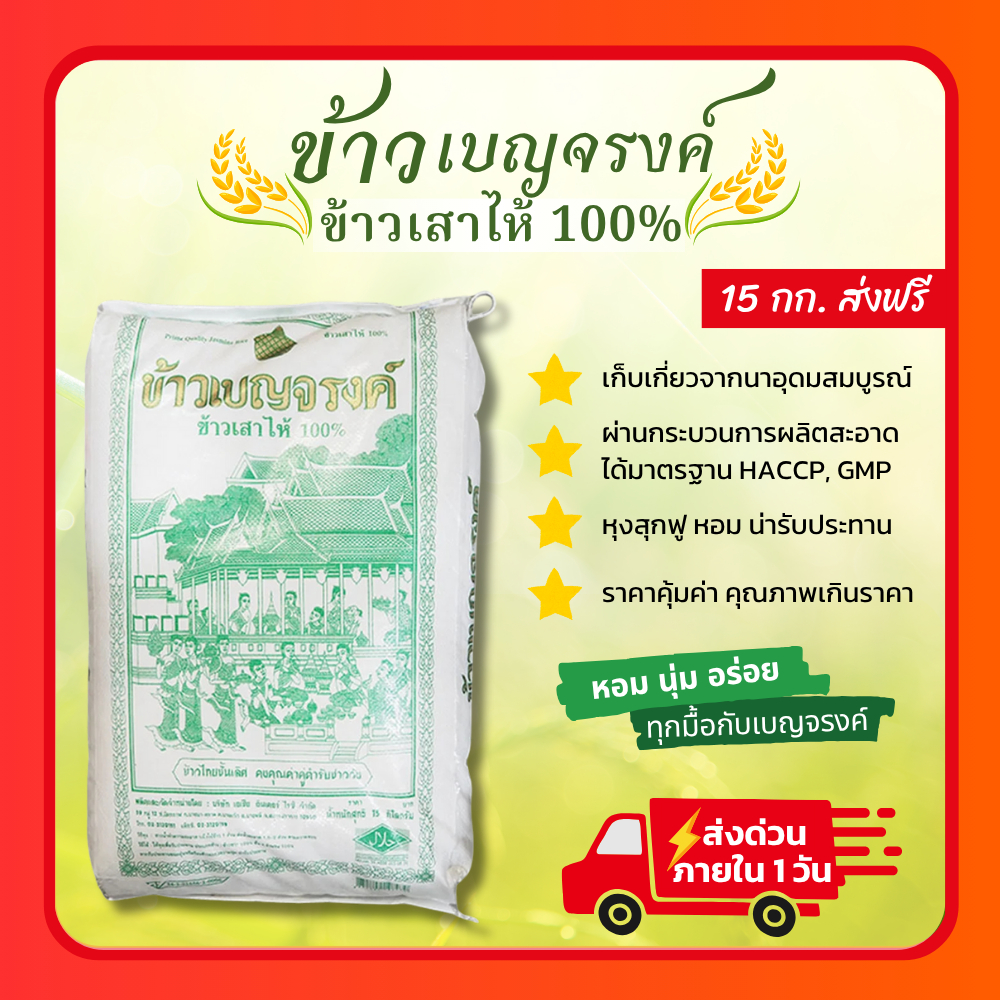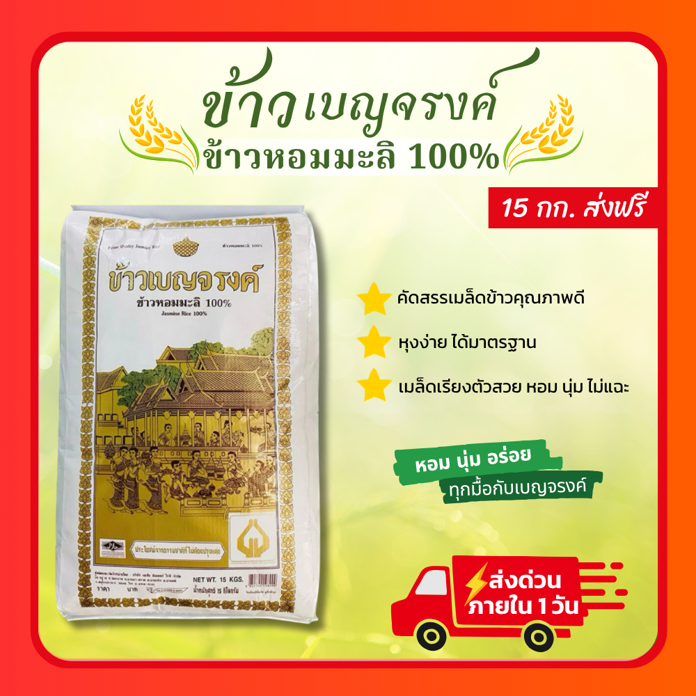[ส่งฟรี]🌾 รวมข้าวเบญจรงค์ 15 กก. | ข้าวขาวเสาไห้ /ข้าวหอมมะลิทอง/ข้าวหอมมะลิ100%/ข้าวหอม 100%