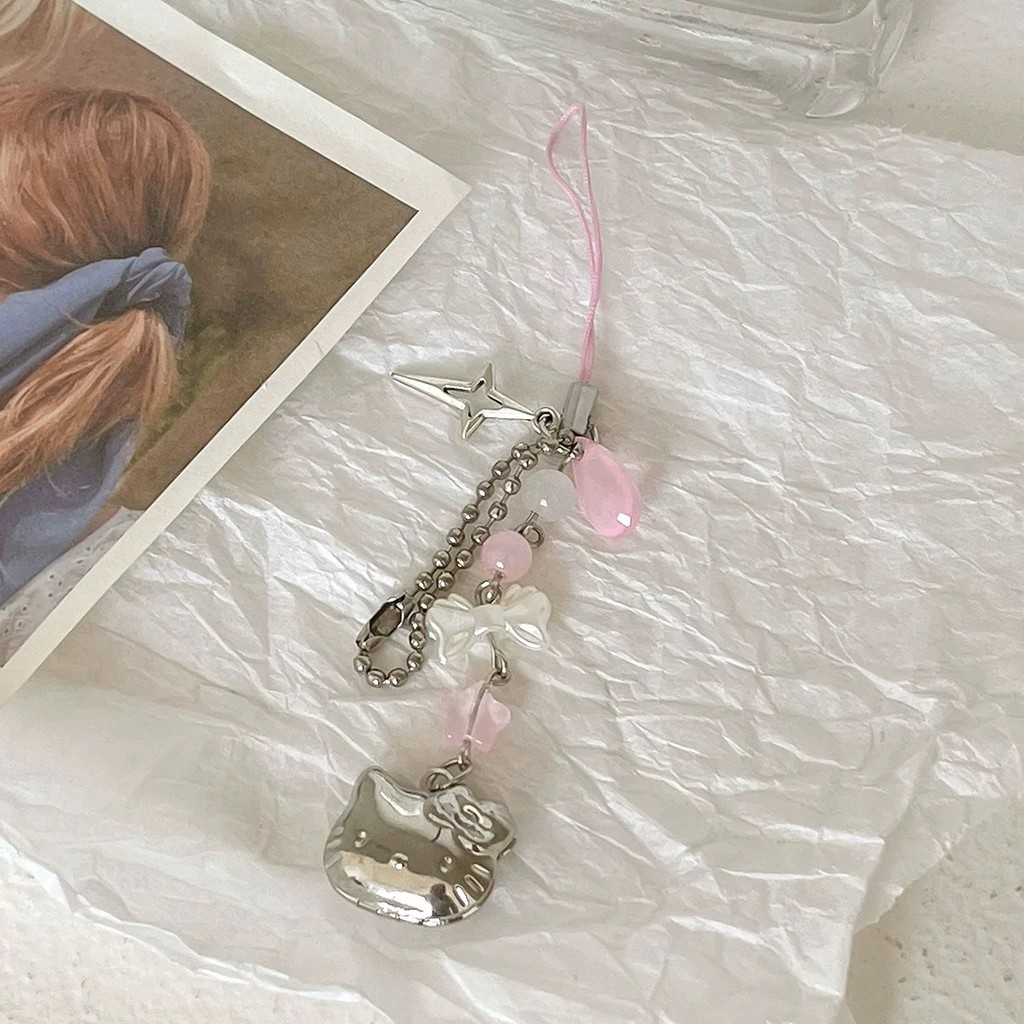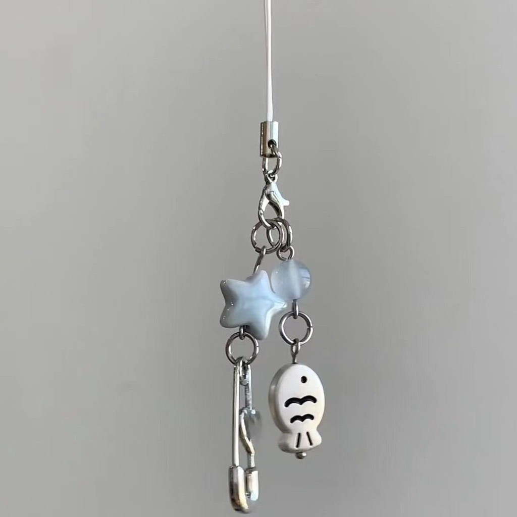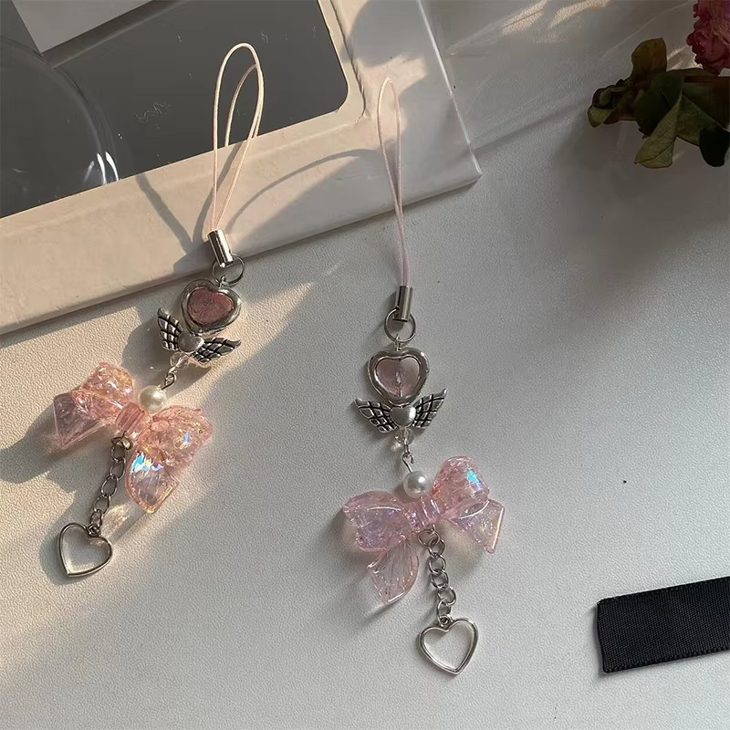 ย2เค กระเป๋าถือสีฟ้าเสน่ห์โบว์หัวใจดาวพวงกุญแจจี้ น่ารัก กระเป๋าเครื่องประดับกระเป๋าเป้สะพายหลังแท็กหวานอุปกรณ์เสริมสําหรับสาวผ