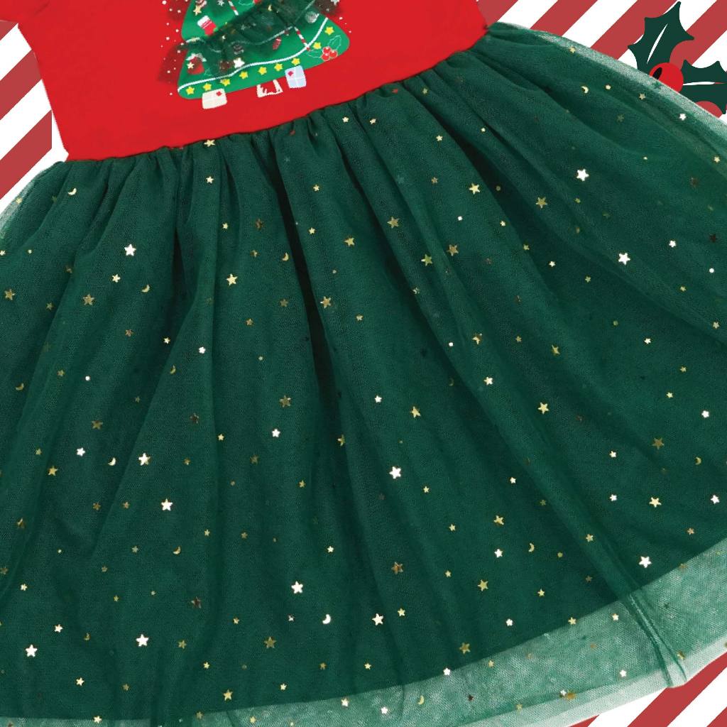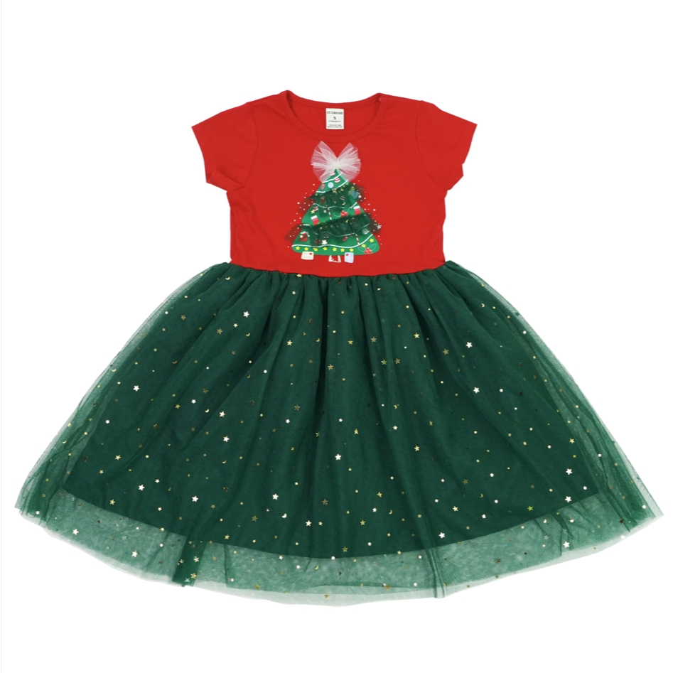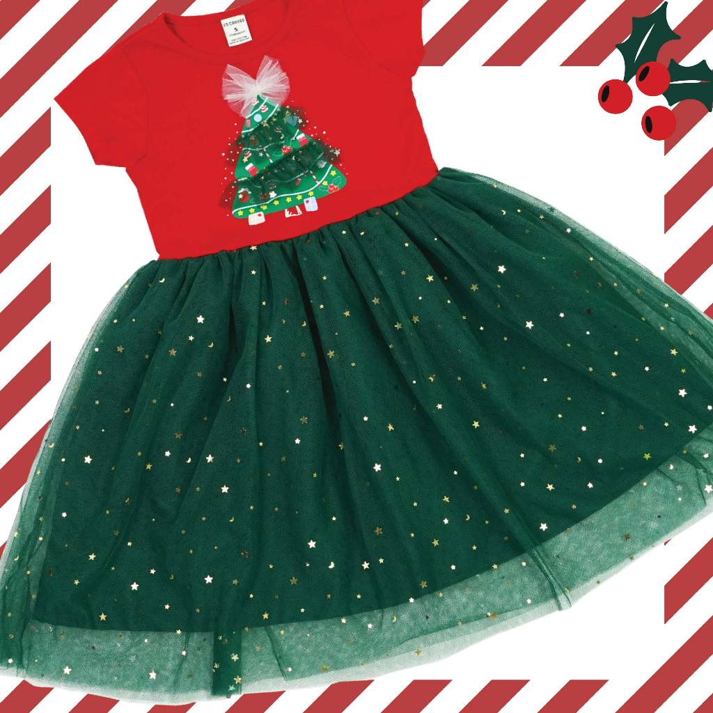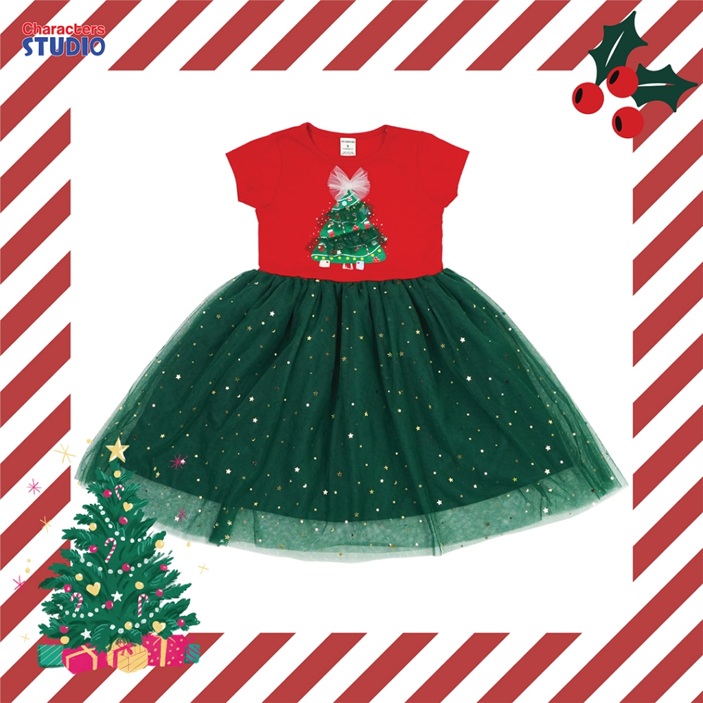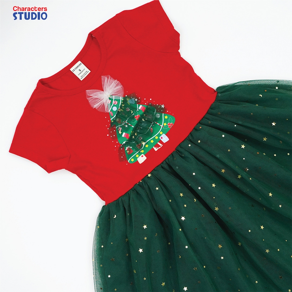 CS CANVAS ชุดเดรสคริสต์มาสเด็กผู้หญิงกระโปรงตกแต่งด้วยผ้าตาข่าย ผ้าcotton แท้100% ลายลิขสิทธิ์แท้ Characters Studio