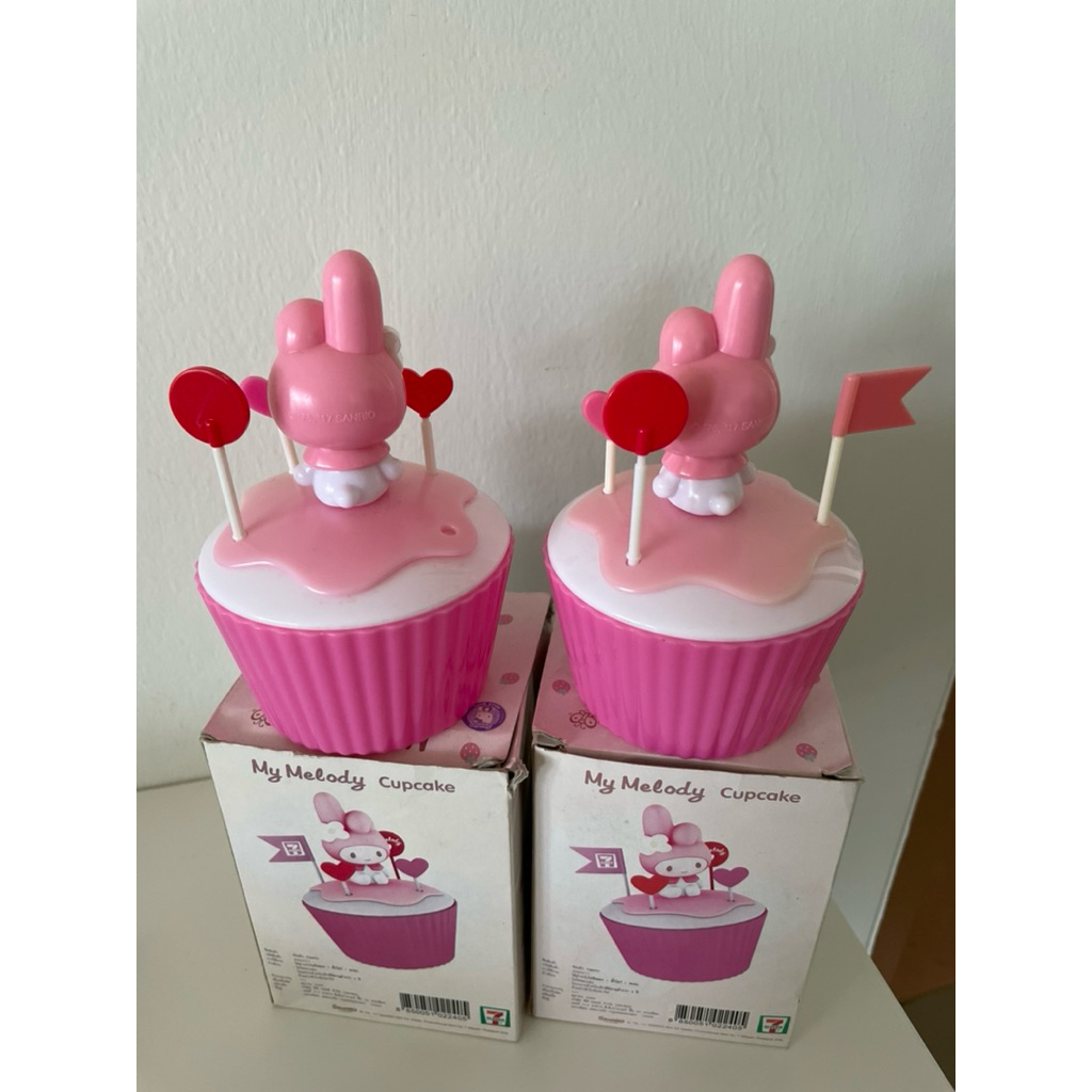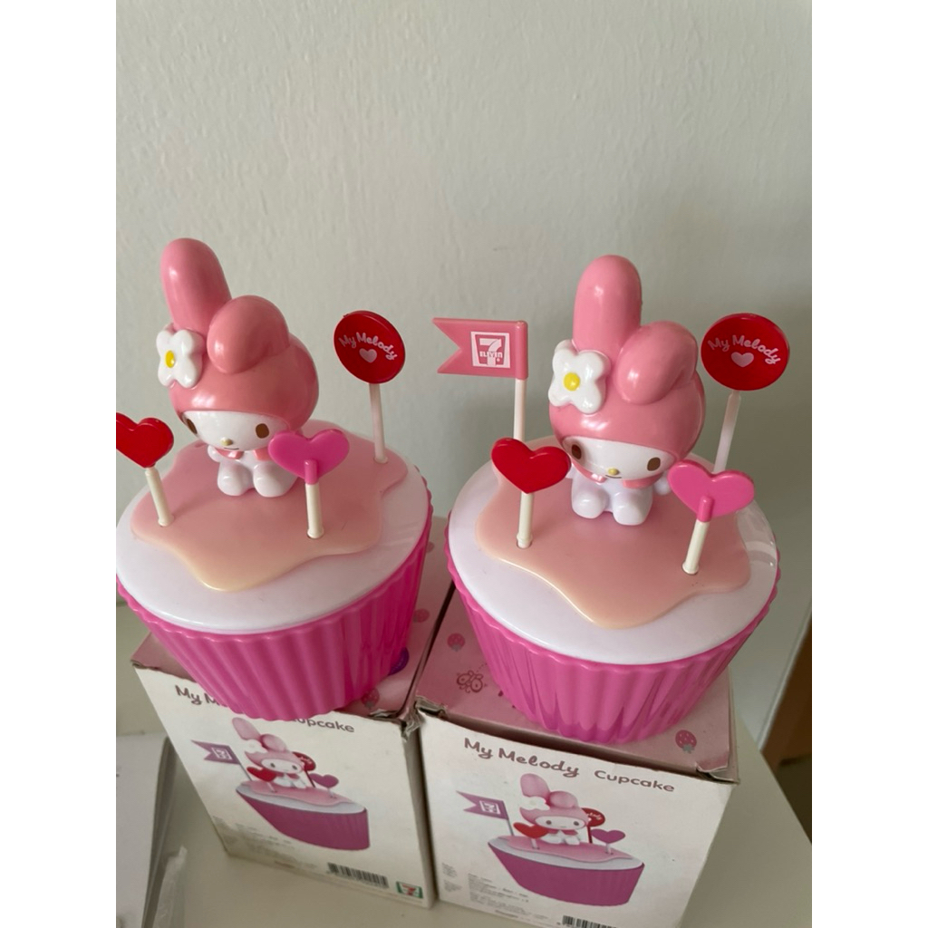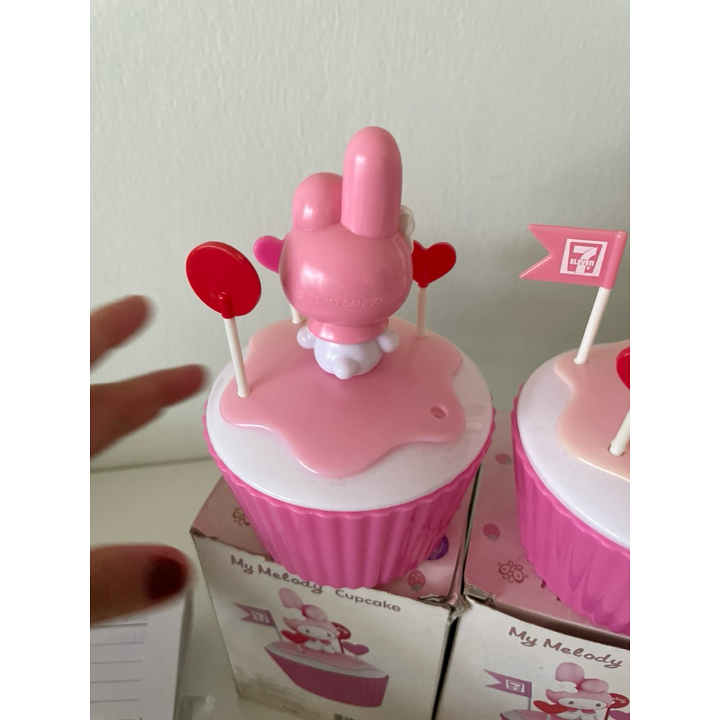mymelodycupcakeของสะสมจากเซเว่นมีตำหนิคาบเหลืองธงอีกหาย1 อันตามภาพได้2อัน