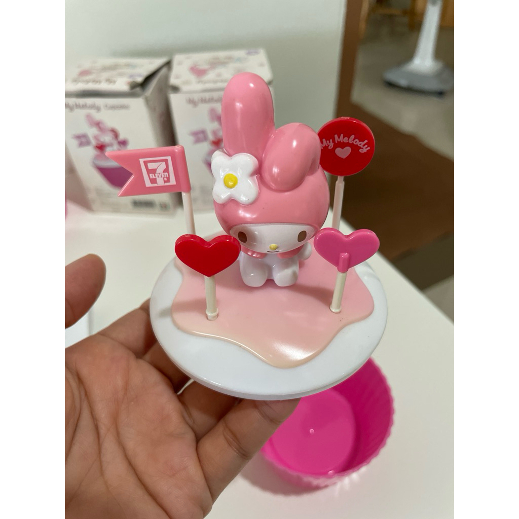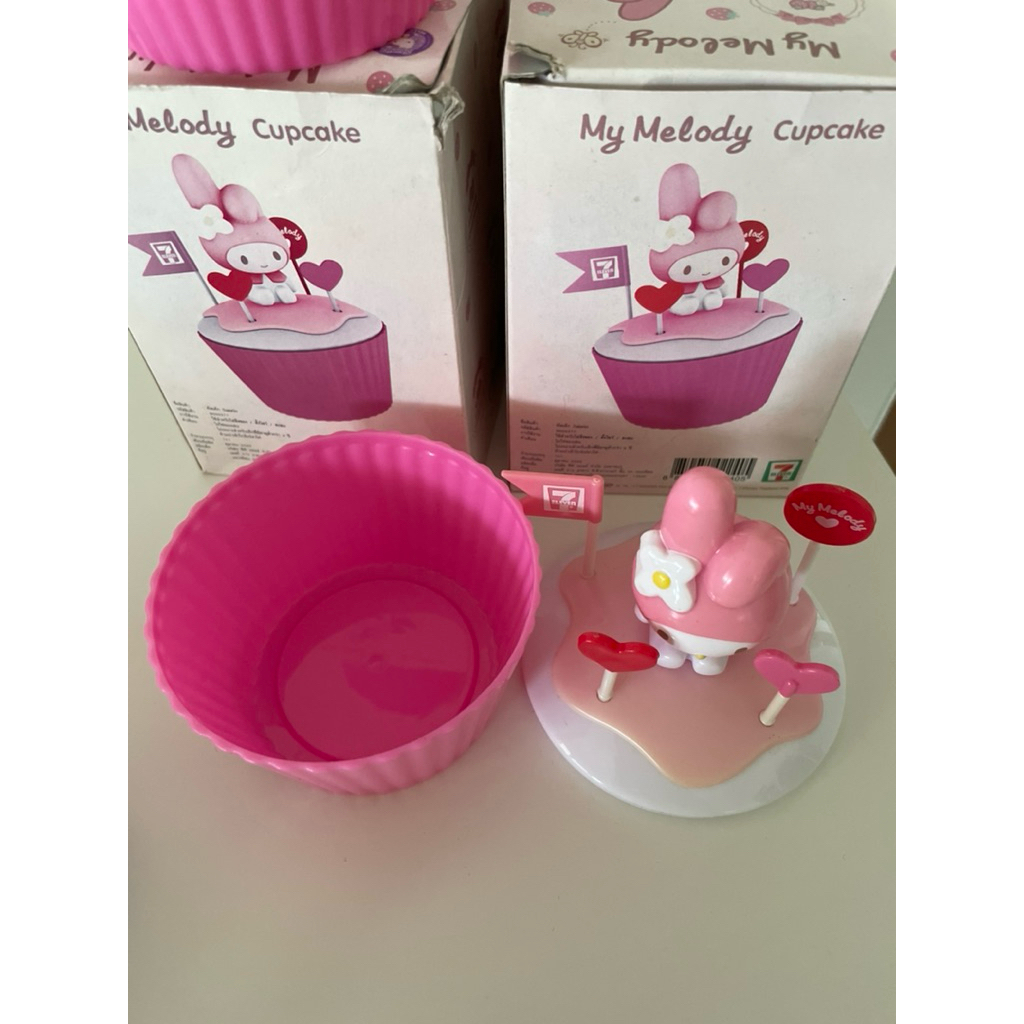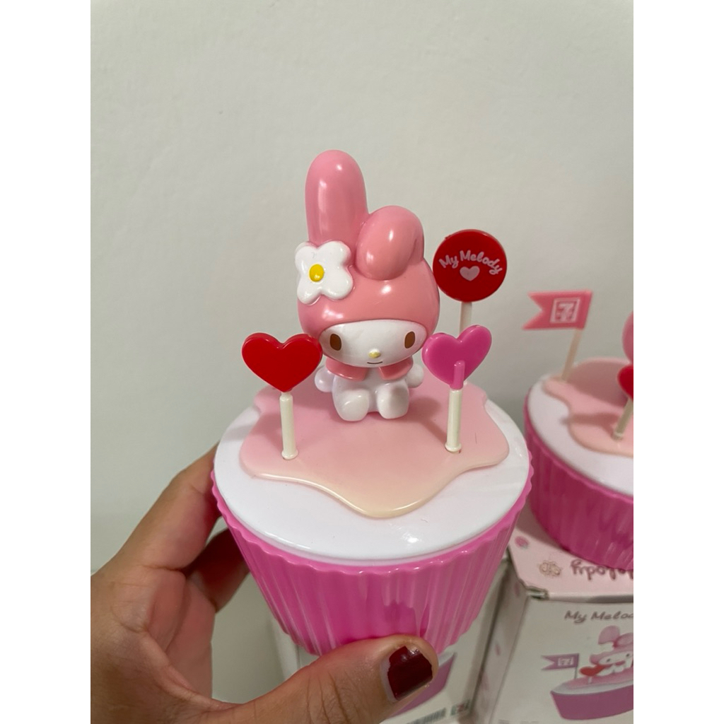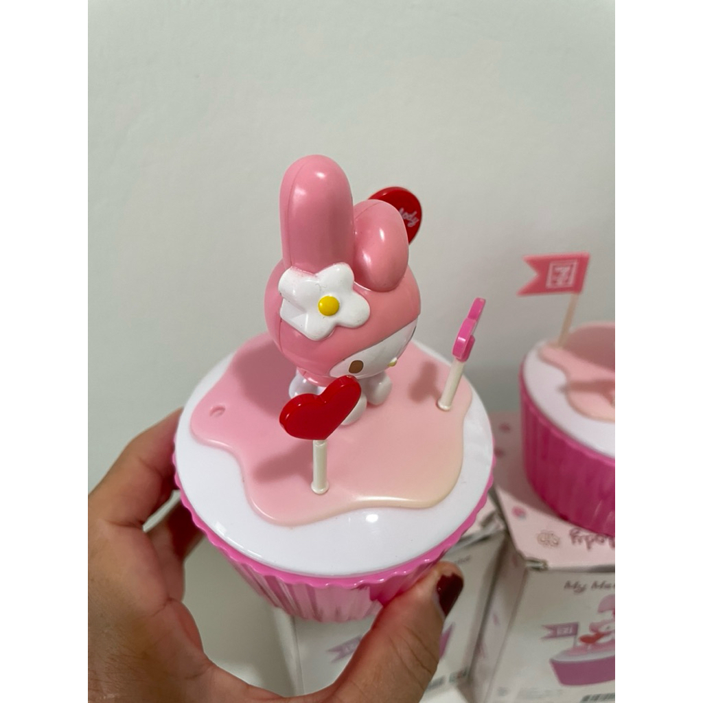 mymelodycupcakeของสะสมจากเซเว่นมีตำหนิคาบเหลืองธงอีกหาย1 อันตามภาพได้2อัน