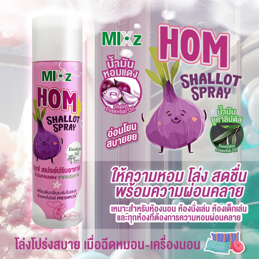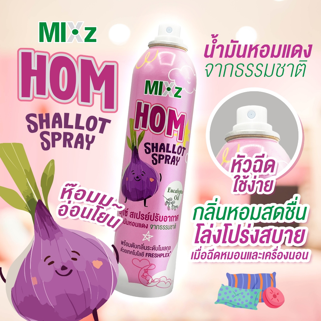 MIXz HOM สเปรย์ปรับอากาศ น้ำมันหอมแดง 100 - 280 มล.