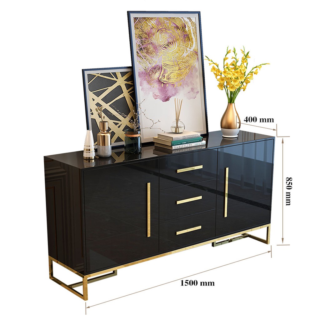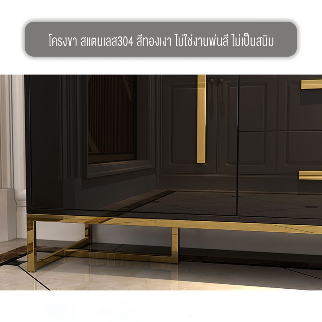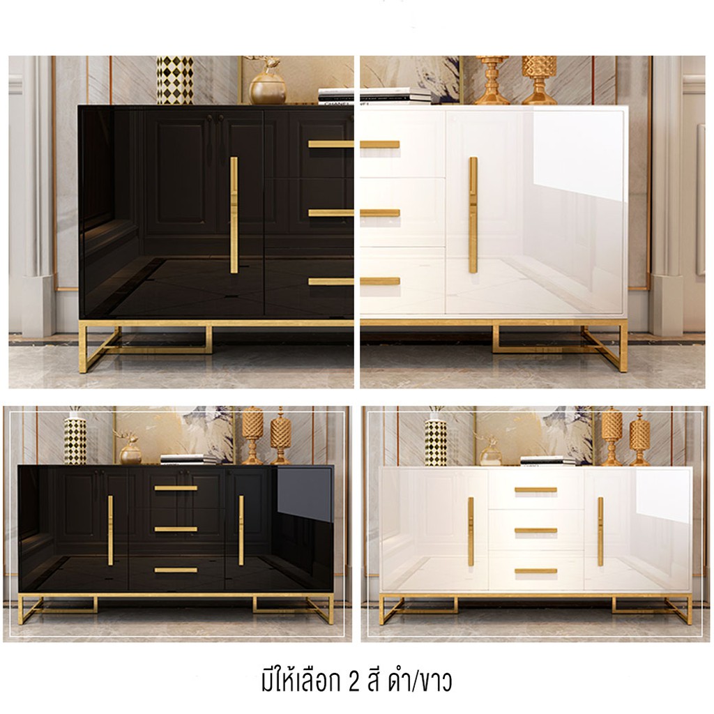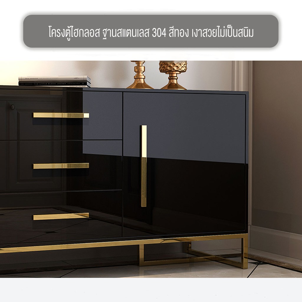 ตู้เก็บของ ชั้นวางของ ไฮกลอสดำขอบสแตนเลสสีทอง ส่งฟรี