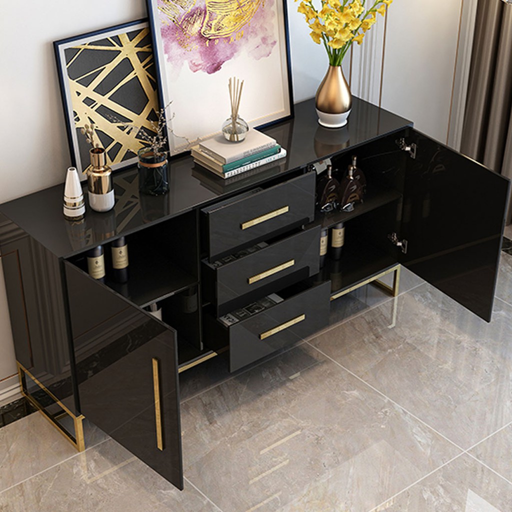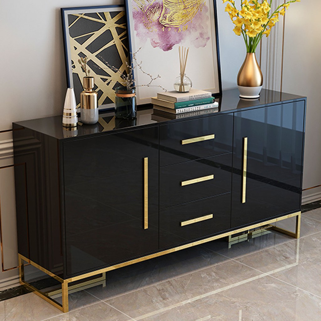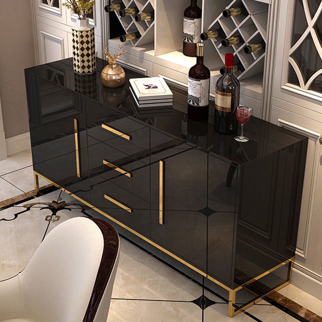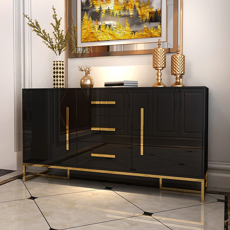 ตู้เก็บของ ชั้นวางของ ไฮกลอสดำขอบสแตนเลสสีทอง ส่งฟรี