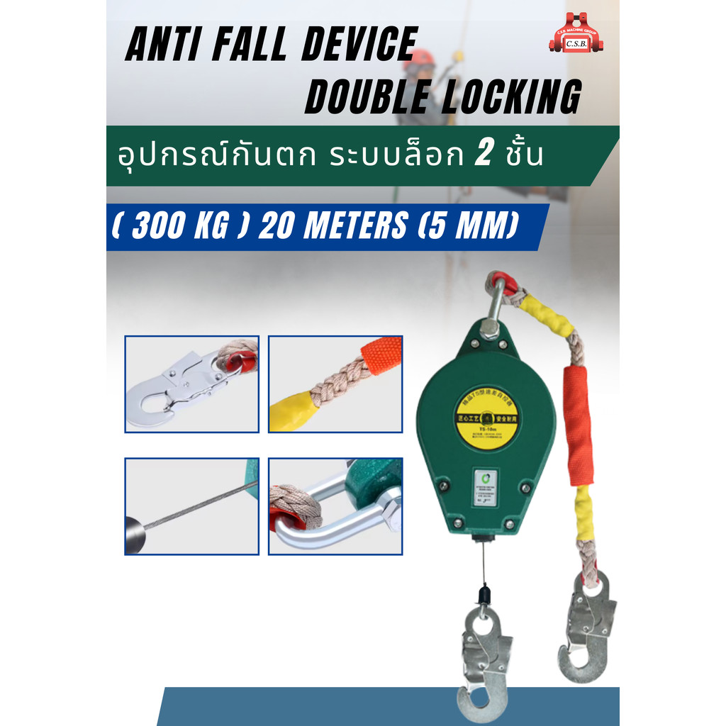 อุปกรณ์กันตก ระบบล็อก 2 ชั้น ANTI FALL DEVICE DOUBLE LOCKING รุ่น ( 300 kg ) 20 meters (5 mm)