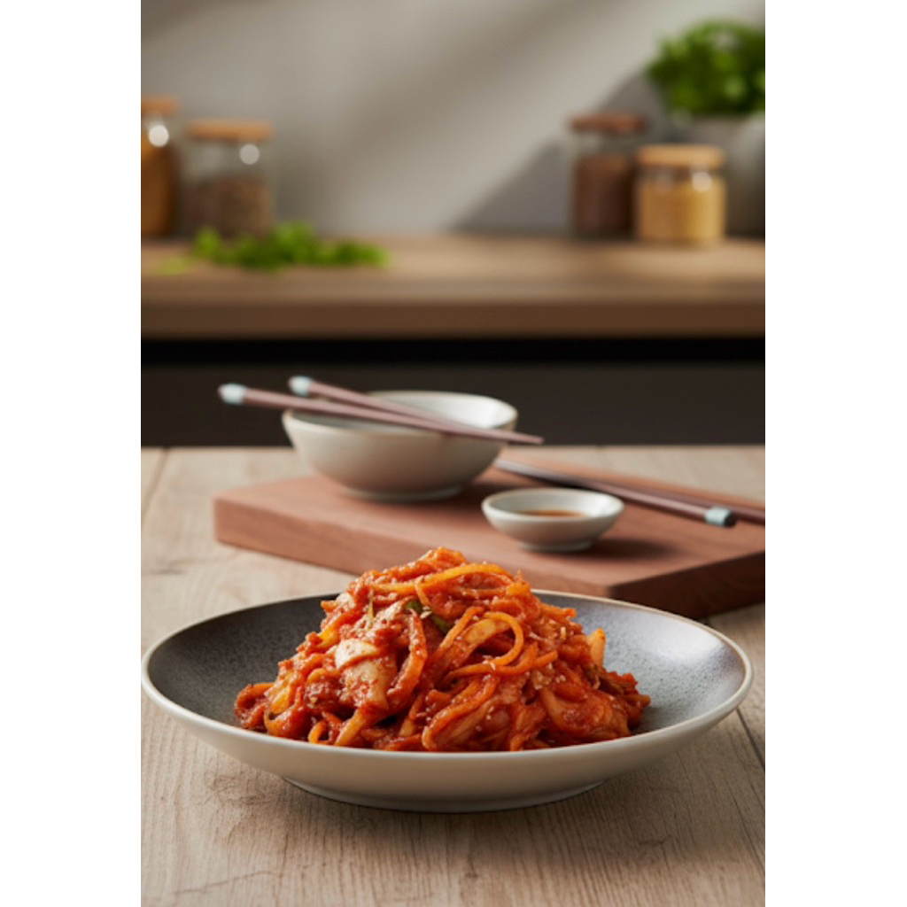 กิมจิแมงกะพรุน500กรัมรสชาติเข้มข้นแซบนัวปรุงสุกแล้วออกเผ็ดลูกค้าท่านไหนทานเผ็ดน้อยไม่แนะนำ(มีผงชูรส)