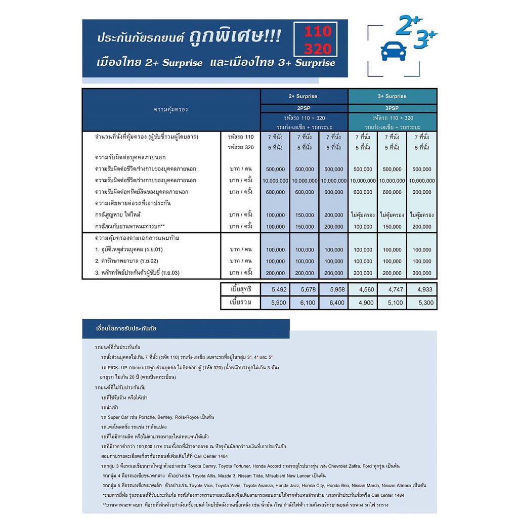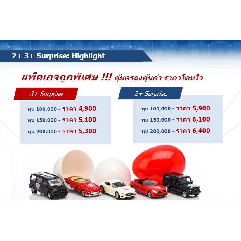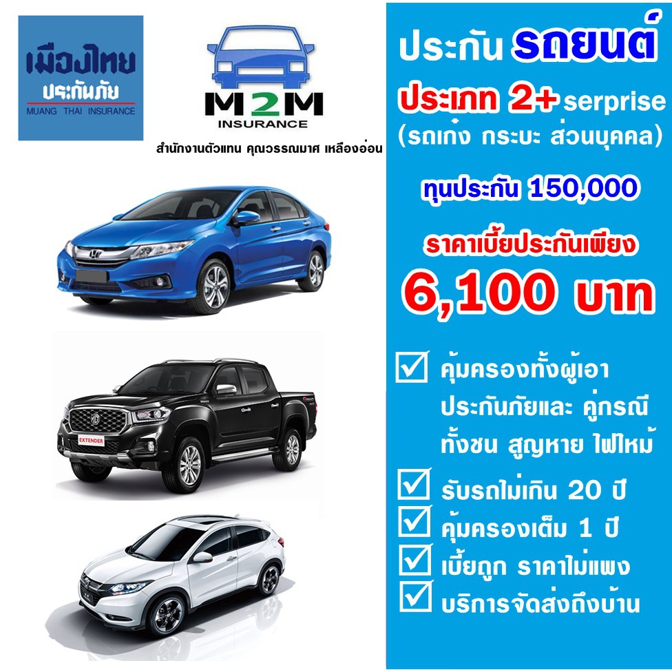 ประกันรถยนต์ ชั้น 2+ เมืองไทย 2+Serprise (รถเก๋ง กระบะ ส่วนบุคคล) ทุนประกัน 150,000 คุ้มครอง 1 ปี