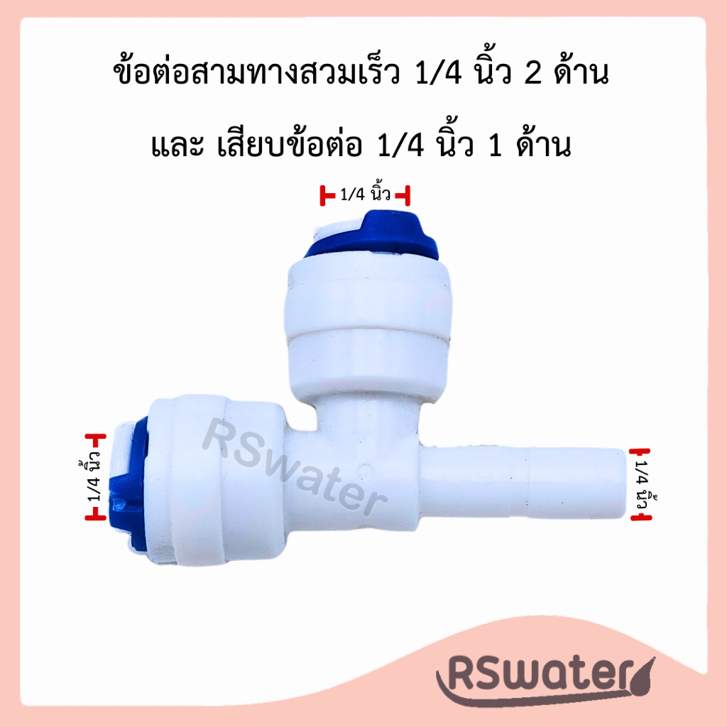 ข้อต่อสามทาง เสียบสายพีอีและไส้กรองน้ำ 2-3 หุน 1/4, 3/8 นิ้ว เครื่องกรองน้ำ PE Connector Fittings for Water Purifier
