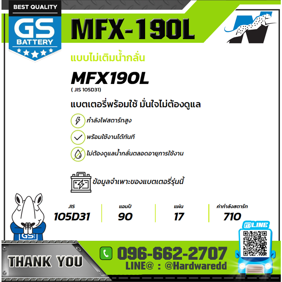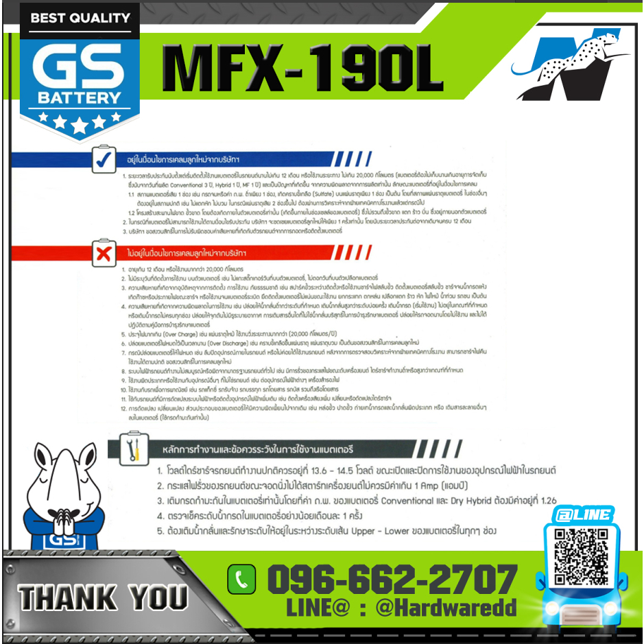 GS แบตเตอรี่รถยนต์ รุ่น MFX-190L (แบตใหม่ - ของแท้ 100%)
