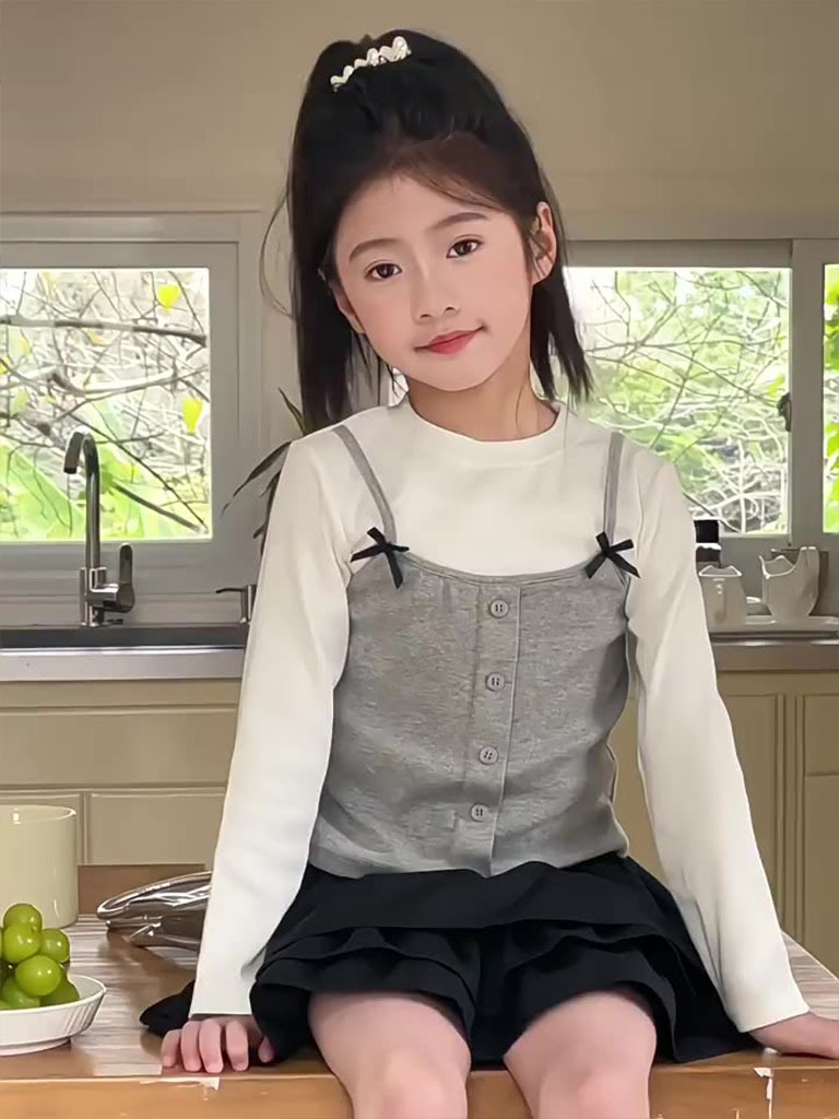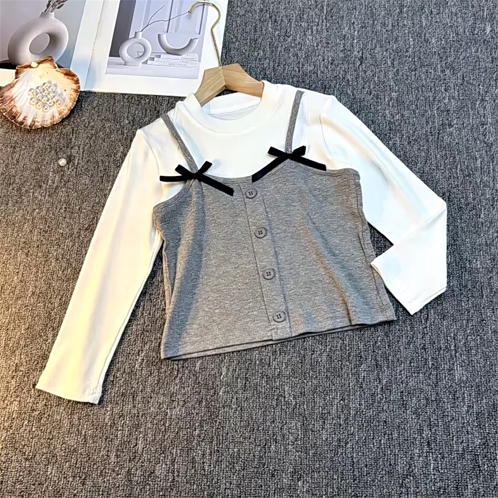 PRINCESS KESLI เสื้อแขนยาวเด็ก เสื้อยืดสไตล์เกาหลีรุ่นใหม่ เสื้อผ้าแฟชั่นแซ่บๆ ลำลองสบายๆ สำหรับเด็กผู้หญิง ฤดูร้อน