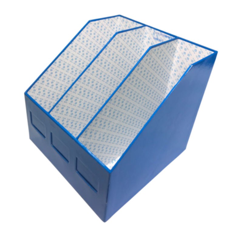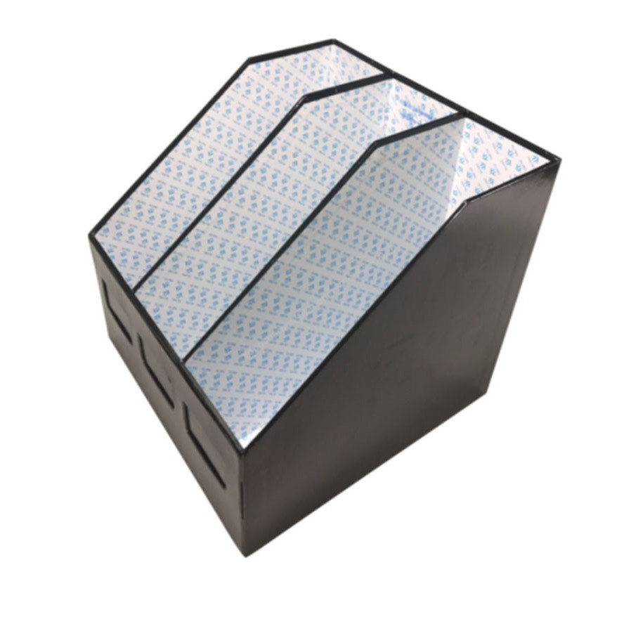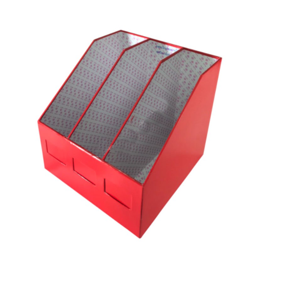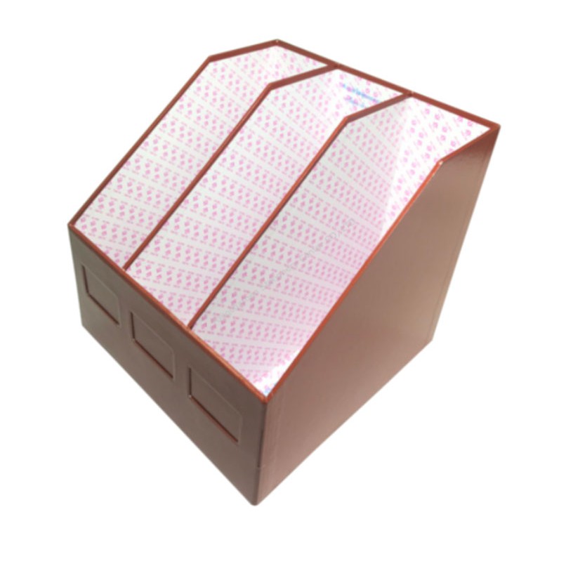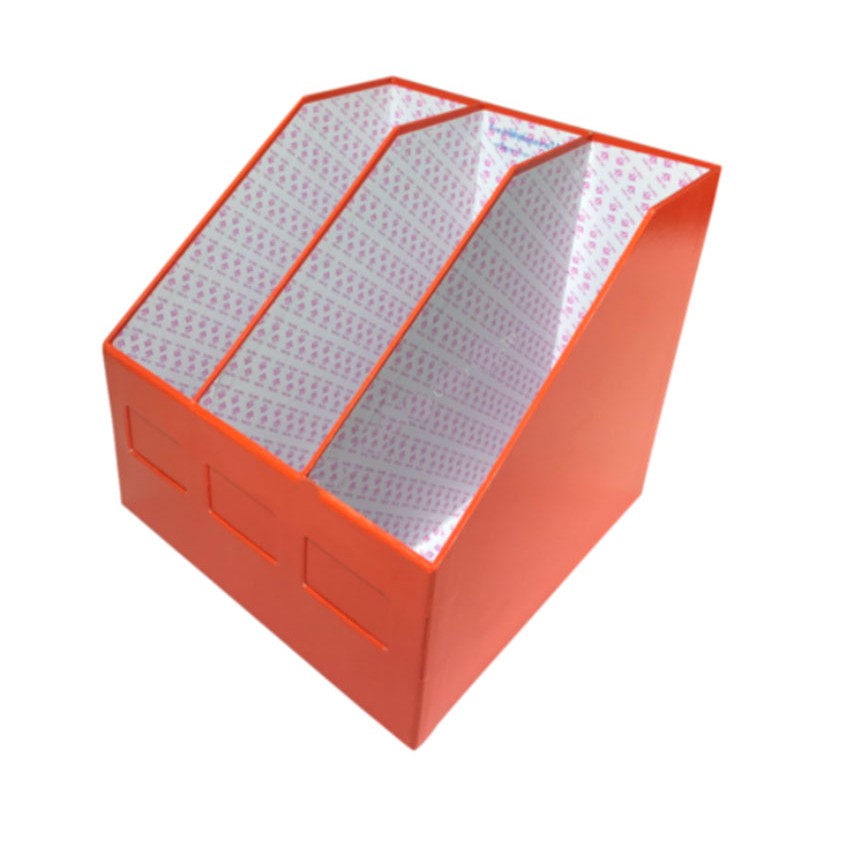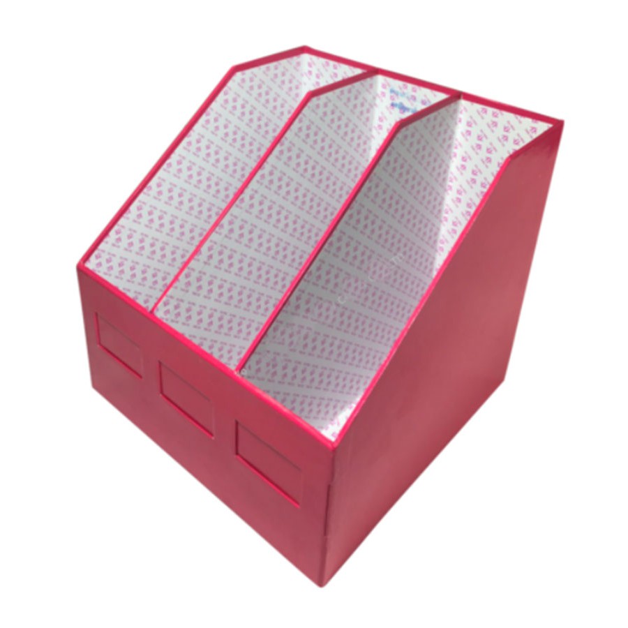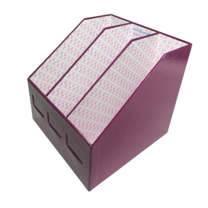 กล่องใส่แฟ้มปากตัด 3 ช่อง กระดาษแข็งอย่างดีหุ้มด้วยกระดาษอาร์ตลายผ้า หลากสี